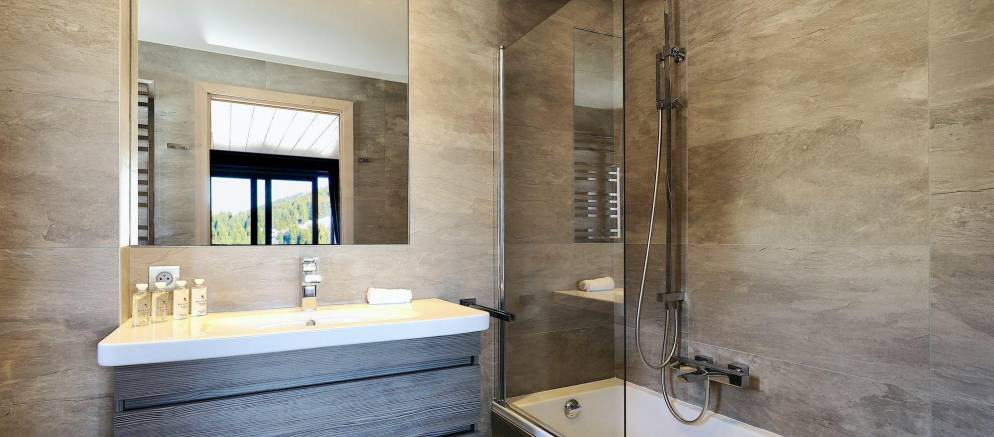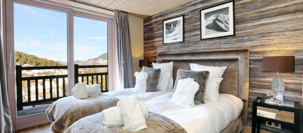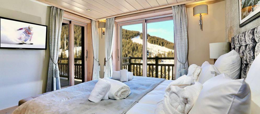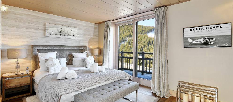 With two double bedrooms and two twin bedrooms it is the perfect chalet for a family, and each can have their own floor for added privacy. These rooms enjoy the same panoramic views over to Courchevel 1850 and 1550 and down the valley.