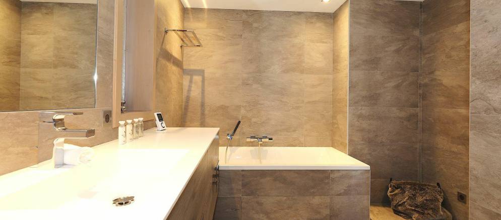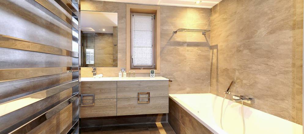 The décor is refined and elegant and the wood burning fireplace at the heart of this floor. The large south and west facing terrace is perfect for enjoying the spring sunshine, whilst the outdoor hot tub lets you enjoy the views totally relaxed, especially when the snow is falling.