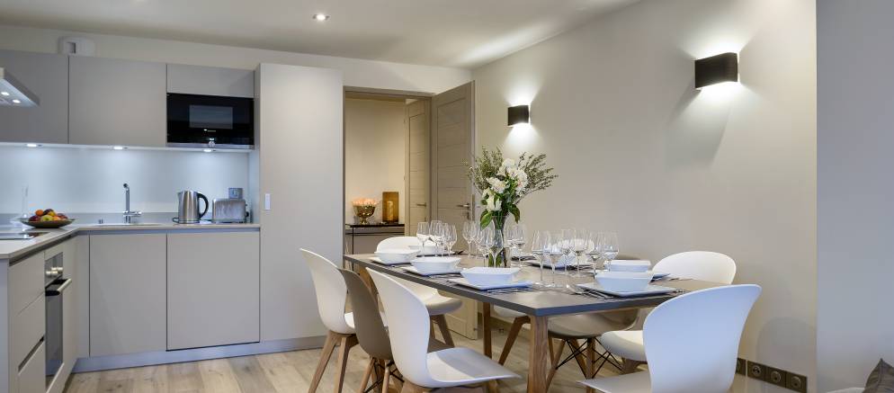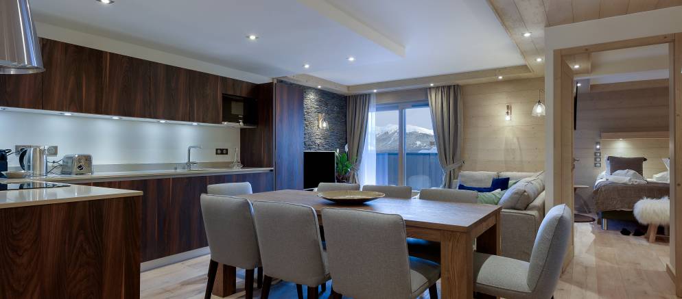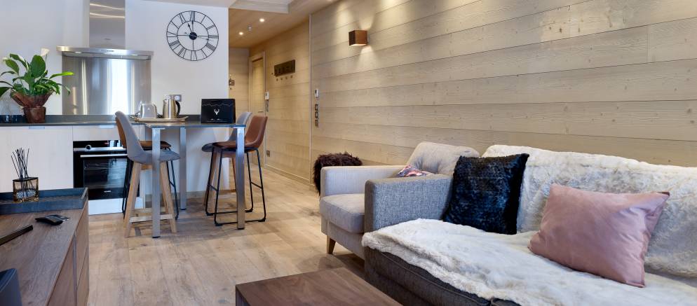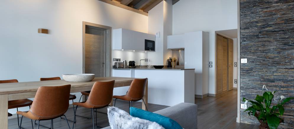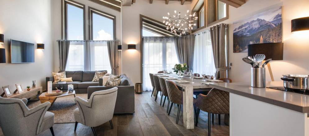 All the properties in the Le C Resort can be rented on either a self-catered “Tradition Pack” basis, or on a bed & breakfast “Premium Pack” basis. The bed & breakfast option includes daily continental breakfast delivered to your property, daily cleaning, and a shuttle service in Courchevel 1650 from Sunday to Friday from 08:30 to 18:00.