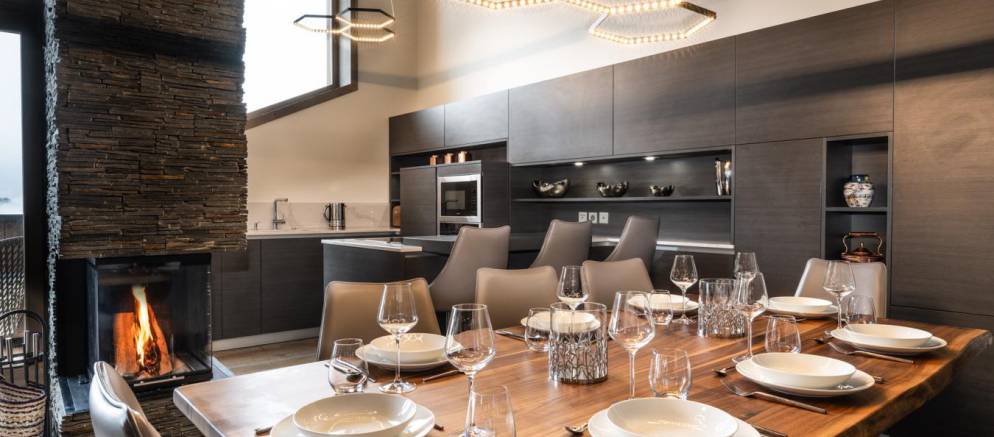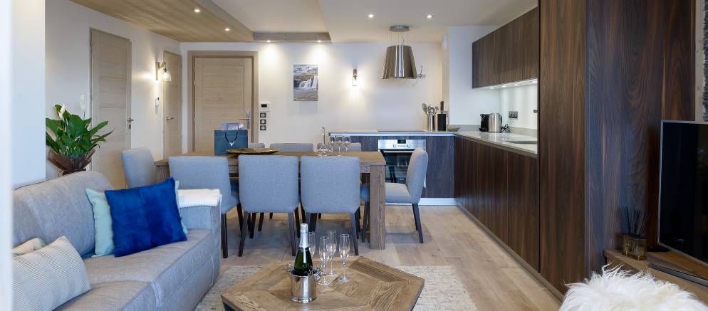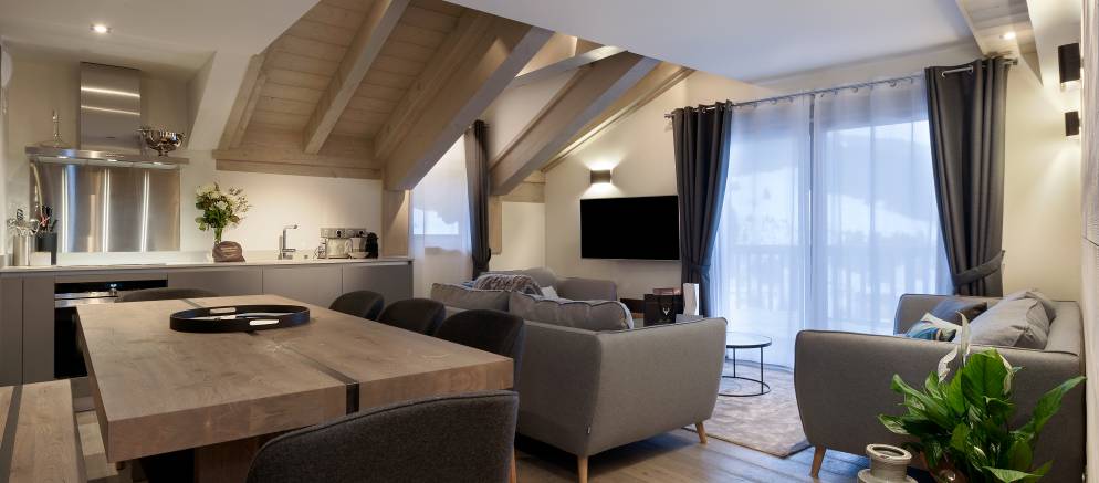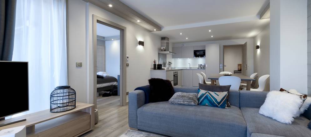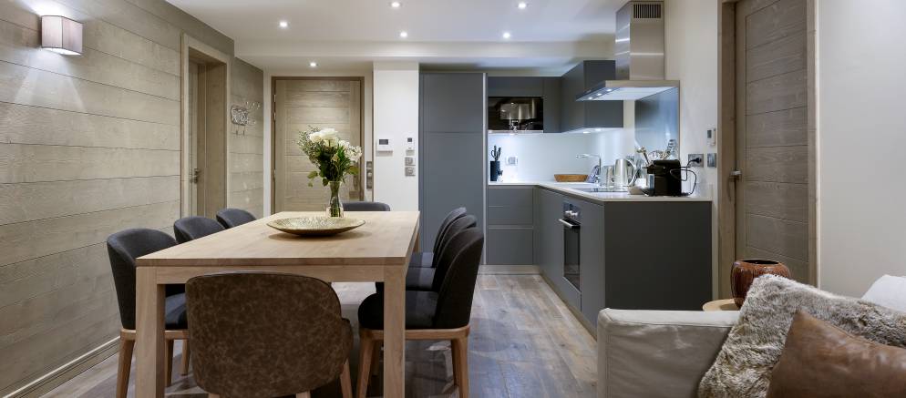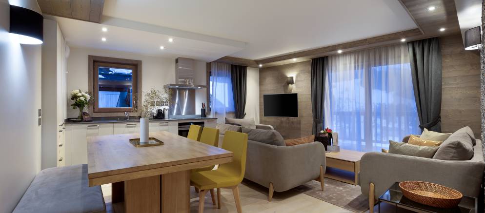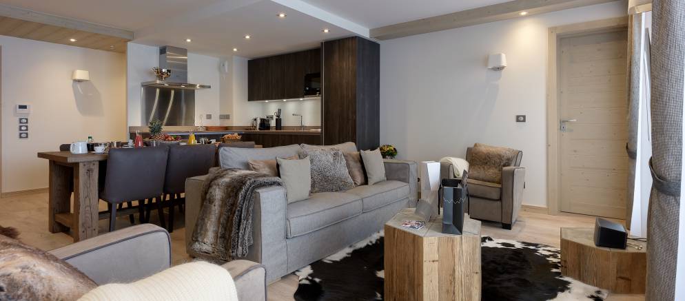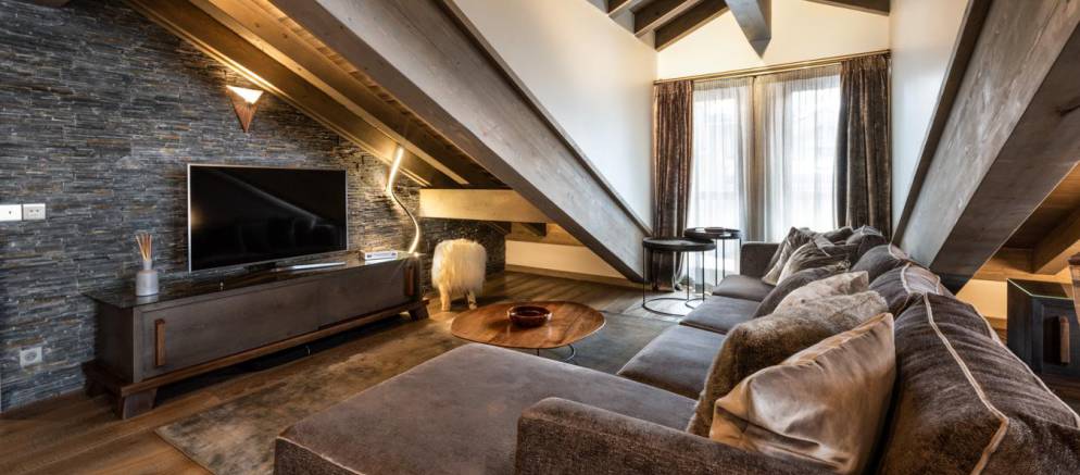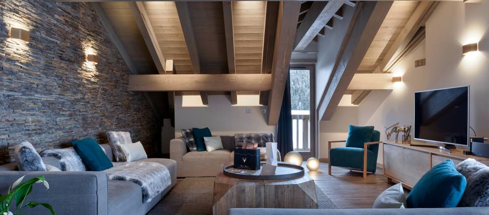 In the Le C (A) property there are twelve luxury apartments from two to five bedrooms and sleeping between four and ten people. The apartments all have a modern and well-furnished interior to make for a very comfortable holiday in the mountains. The exceptional Penthouse Koh-I-Nor is the crowning glory of the residence with a private hot tub, steam room and cinema room. Penthouse Paragon, sleeping 8 in 4 bedrooms, features an outdoor hot tub.