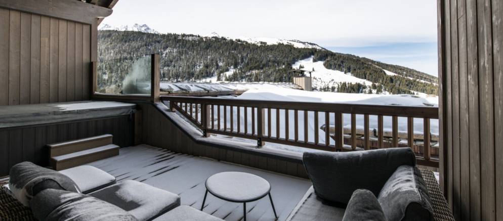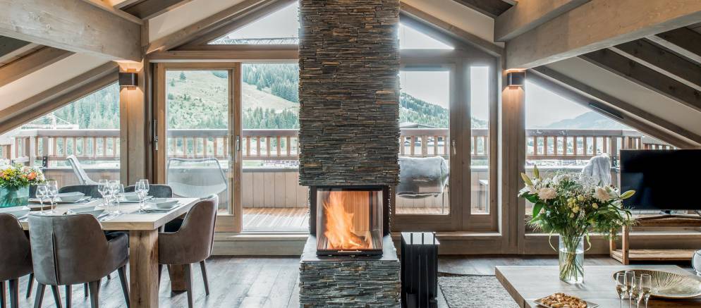 The property also benefits from an outdoor hot tub with panoramic views over the resort and valley, or inside there is a sauna for relaxing tired minds after a long day’s skiing. The large terraces offer wonderful views and are the perfect spot for a morning coffee or pre-dinner drinks.