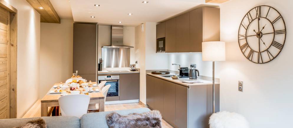 All the properties in the Le C Resort – Mammoth (D) can be rented on either a self-catered “Tradition Pack” basis, or on a bed & breakfast “Premium Pack” basis. The bed & breakfast option includes daily continental breakfast delivered to your property, daily cleaning, and a shuttle service in Courchevel 1650 from Sunday to Friday from 08:30 to 18:00.