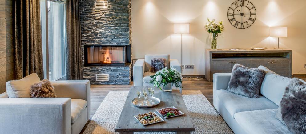 The residence offers thirteen luxury apartments ranging in size from two bedrooms sleeping 4 people to eight bedrooms sleeping 16 people. The apartments all have a modern and well-furnished interior to make for a very comfortable holiday in the mountains. The Penthouse D15 is the largest apartment and features its own hot tub and sauna.