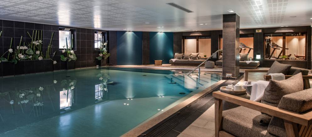 Outside the impressive chalet style architecture is clad in stone and wood, and in the depths of winter pillows of snow on the roof. The incredible spa is a haven of relaxation and perfect for unwinding after a day’s mountain adventures.
