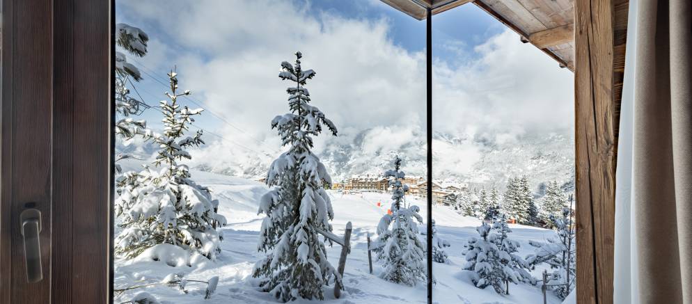 There are eight luxury ski in ski out chalet residences in the South resort, all of which feature four en-suite bedrooms. While the residences are linked together, they offer complete privacy, with access to the extensive spa, front desk, restaurant, bar, and valet car parking. The Prestige Residences are closer to the ski slope and are more private, while the Signature Residences have access to the slopes via the indoor ski room. It is a short ski down to the fast Ariondaz gondola.