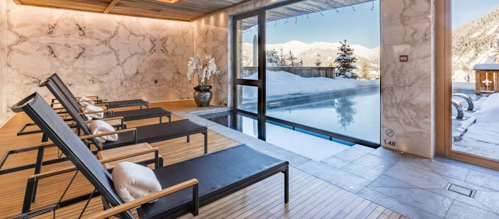 The Ultima Courchevel is a unique development of 13 chalet residences over an area of 3,700m2, located in the exclusive area of Belvédère, just above Courchevel 1650. The residences are arranged into a South Resort and North Resort, and both have access to their own dedicated spas. The South spa features an outdoor heated swimming pool, sauna, hammam, gym and treatment rooms.