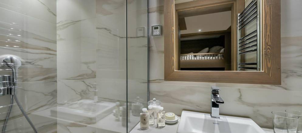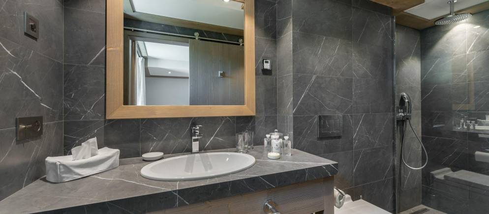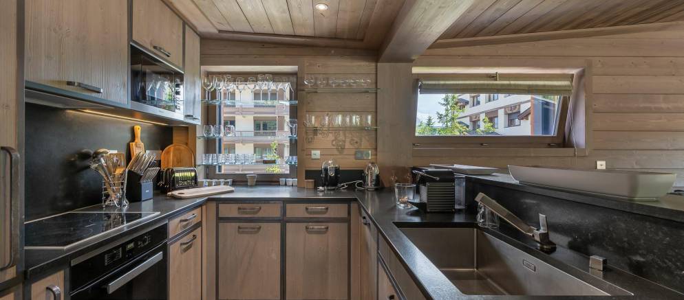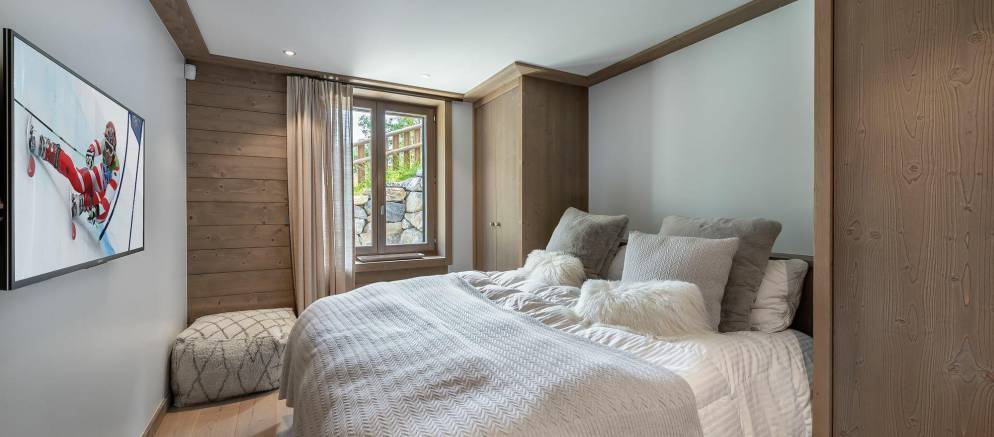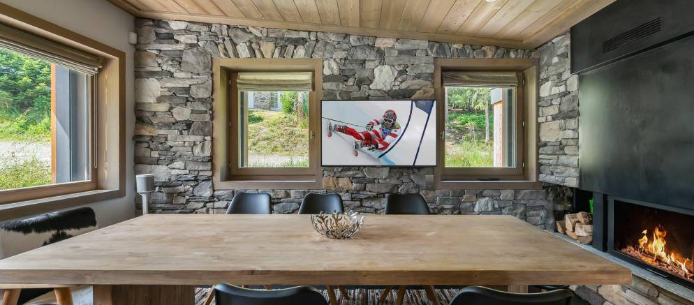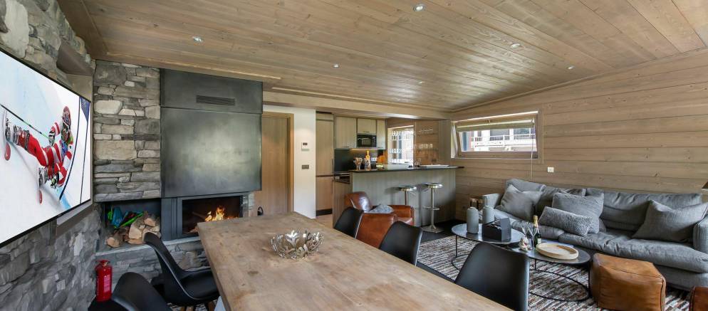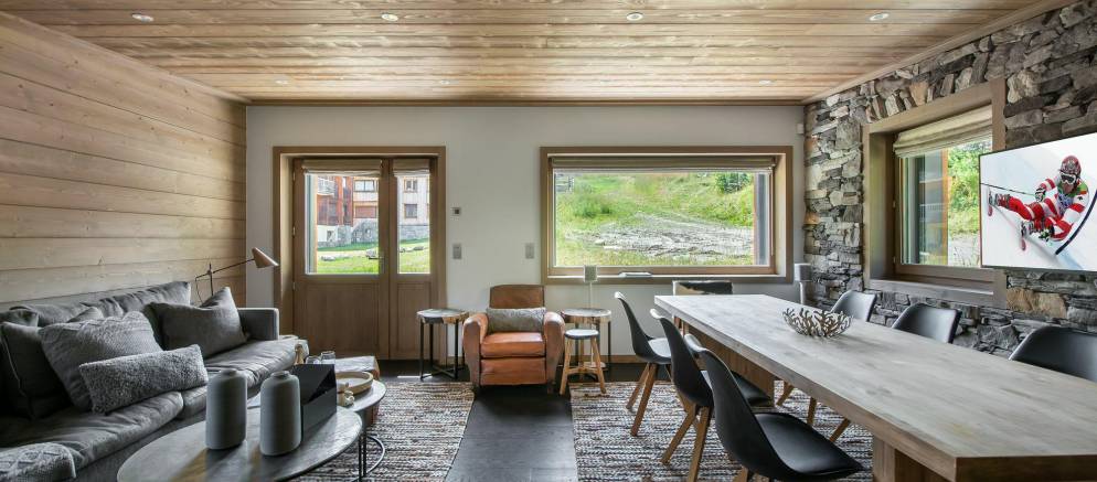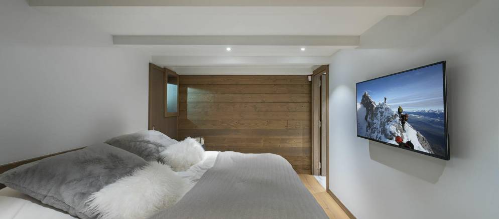 The chalet is arranged over two floors and 230m2 of living space and can accommodate 8-10 guests in five en-suite bedrooms. The open plan living and dining room, plus kitchen are on the top floor and offer a convivial space for your group to socialise together. Downstairs there is a large cinema room, as well as a steam room, ski room and laundry facilities.