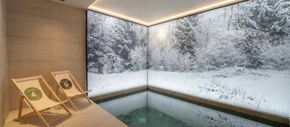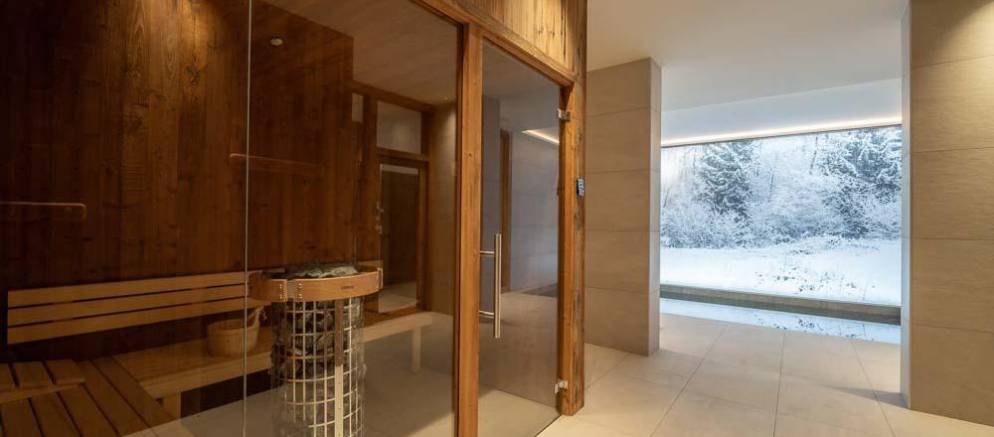 On the lowest level is the wellness area with swim spa, sauna, Italian style shower and relaxation area. The chalet also features a ski room, laundry room and garage.