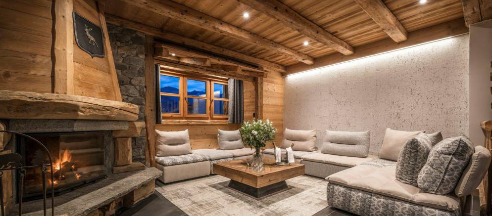 The chalet is arranged over three floors and 250m2 of living space. The open plan living spaces are arranged on the middle floor and offer the perfect communal space to enjoy time together after you return from the ski slopes. Plentiful wood panelling has been perfectly complemented with tiled floors, contemporary furniture, and a fully equipped kitchen. The corner fireplace ensures you will enjoy a cosy mountain ambiance in the evenings.