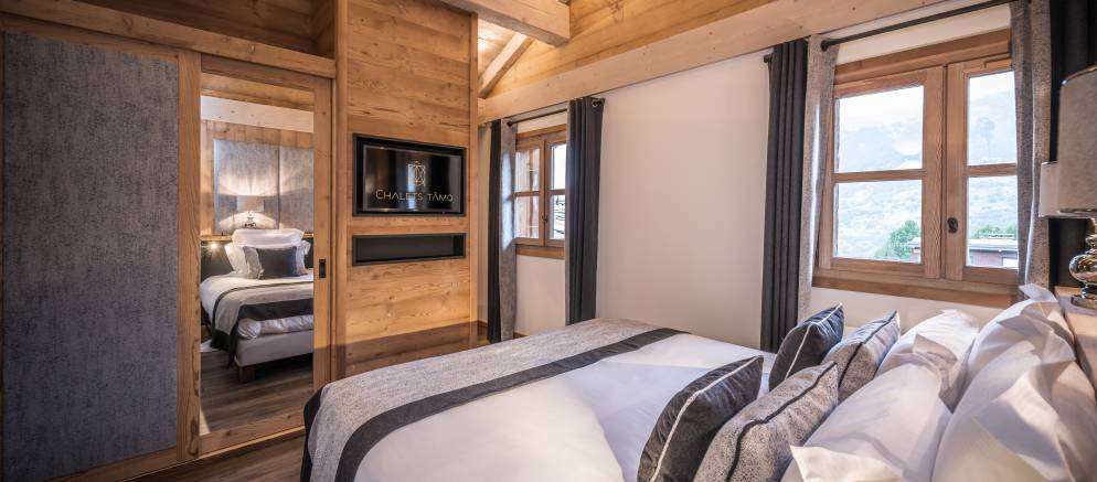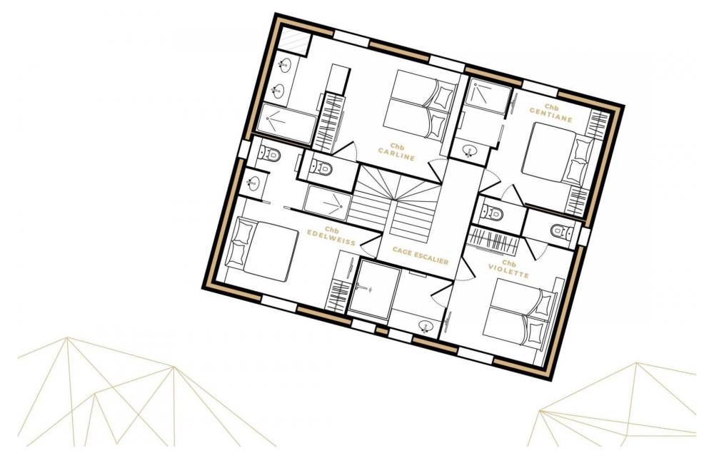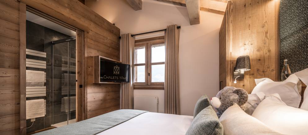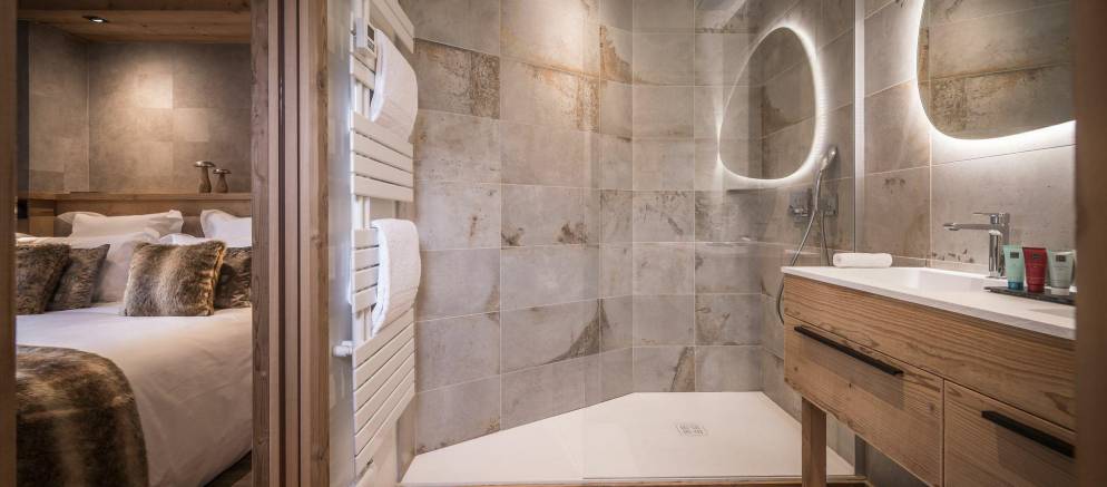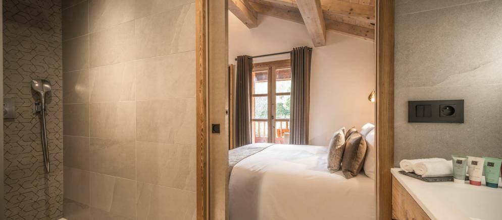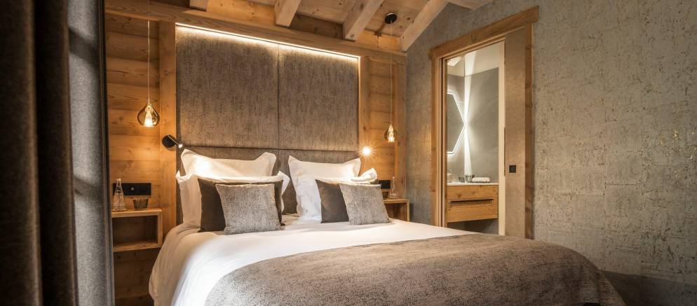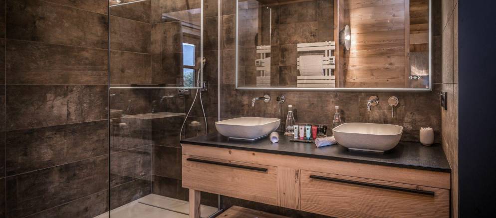 Sleeping 10-12 guests, the 6 bedrooms all offer en-suite facilities. There are four bedrooms on the top floor, one on the middle level, and the final bedroom on the lower level. For groups of 10 or less, it is also possible to rent the chalet with only 5 bedrooms. All the rooms have been decorated in a modern alpine style and offer the perfect cocoon for a peaceful night’s sleep.