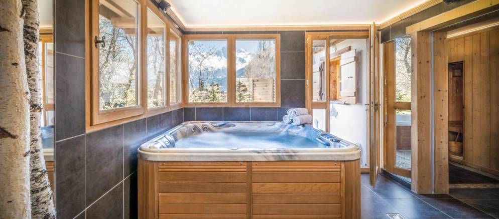 On the lowest level of the chalet are the private spa facilities which include an indoor hot tub, steam room and sauna. The ski room has boot dryers and storage for all your equipment, and is shared with Chalet Le 1992, along with the laundry room with washing machine and tumble dryer.