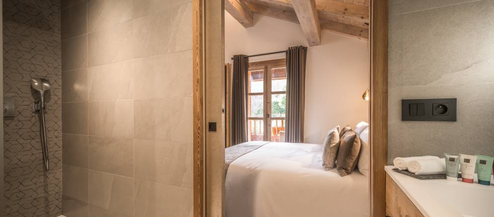 Double or twin bed with terrace and en-suite shower room. (Chalet can be rented with or without this bedroom).