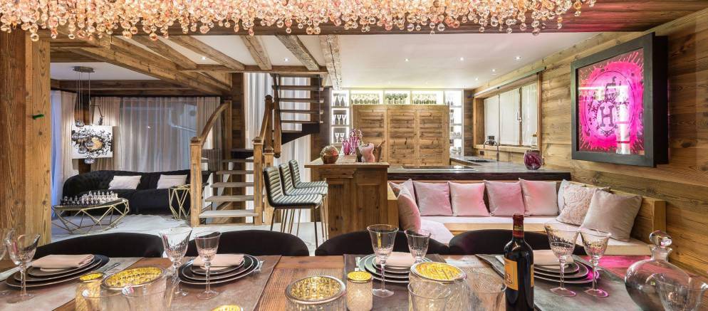 From the outside the chalet is picture perfect; a chocolate box property of stone and timber enticing you to enter. On the inside, the traditional ski chalet has been given a modern twist with a magical mix of warm woods, soft fabrics, stylish furniture, funky object d’art and unique light fittings.