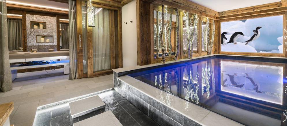 The lower ground floor is dedicated to relaxation and well-being. After a hard day’s skiing there is nothing better than unwinding in the indoor swimming pool, or why not book in for a massage to ease aching limbs. The cinema room is the perfect place for children and adults to enjoy a movie together before dinner.