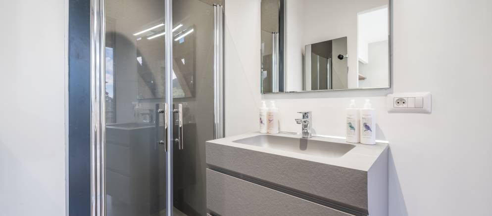 The chalets six bedrooms are spread between the three floors, with two on each. On the ground floor both bedrooms have en-suite facilities, whilst the other four bedrooms share two separate shower rooms. The layout works well for three families sharing as each can have their own privacy in the evenings.