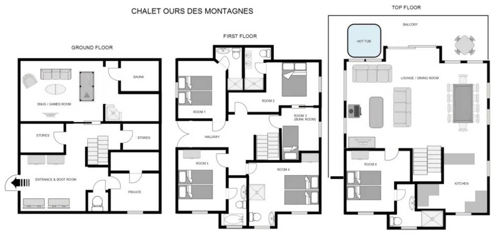 This large and impressive detached ski chalet ticks all the boxes with an outdoor hot tub on the terrace, games & TV room, spacious boot room, sauna, bright double height living room, wood burning stove, comfy sofas and a touch of boutique style.