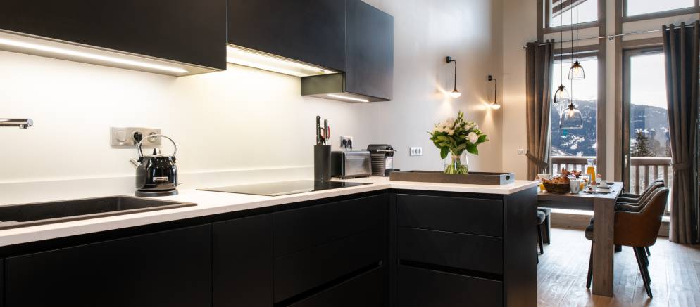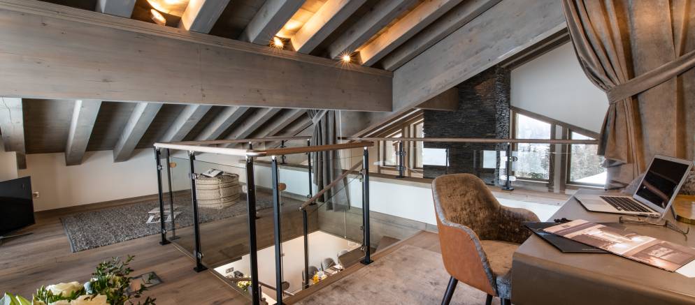 The kitchen is well-equipped for your self-catered holiday and the mezzanine floor above provides an office space and reading corner perfect for some for quiet time. The chalet benefits from WiFi, a washing machine, along with a car parking space in a secure underground car park.
