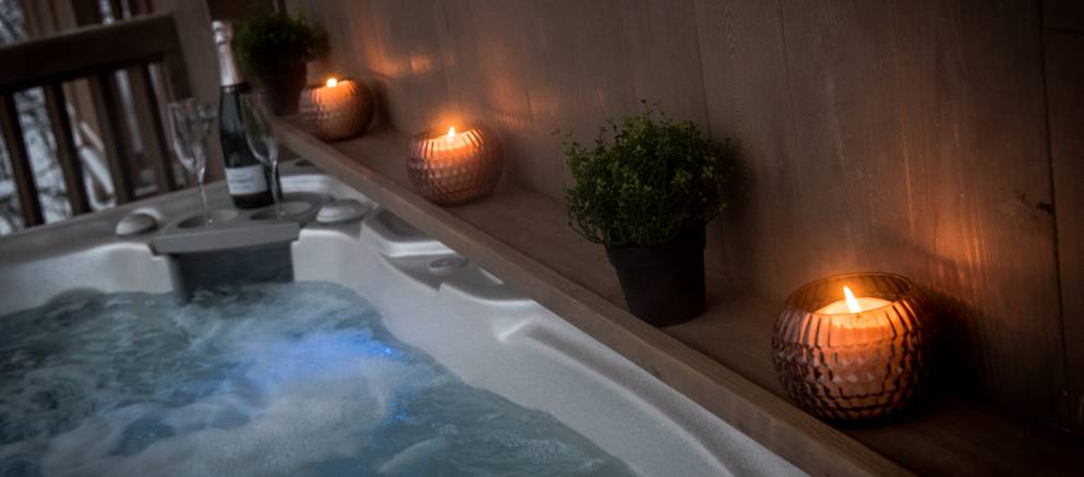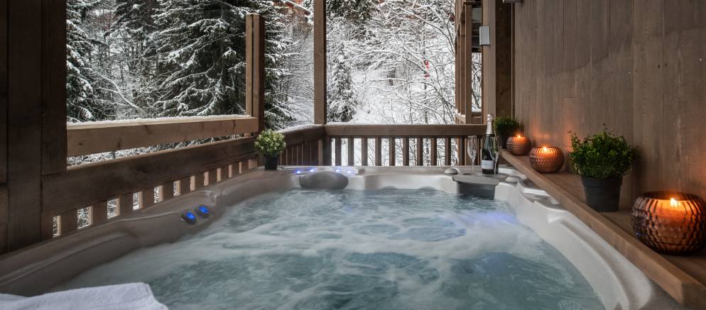 The chalet is arranged over four floors and sleeps 8 people in four double bedrooms. Two of the bedrooms can also be arranged with twin beds and all have either en-suite bath or shower rooms. Each bedroom has access to a balcony with the 2 rooms on floor 2 having direct access to the outdoor hot tub.