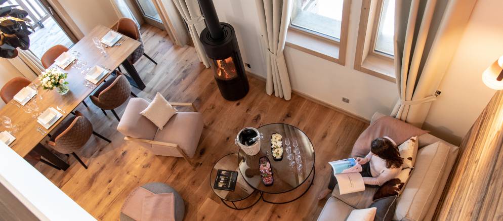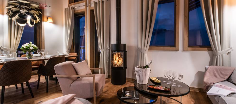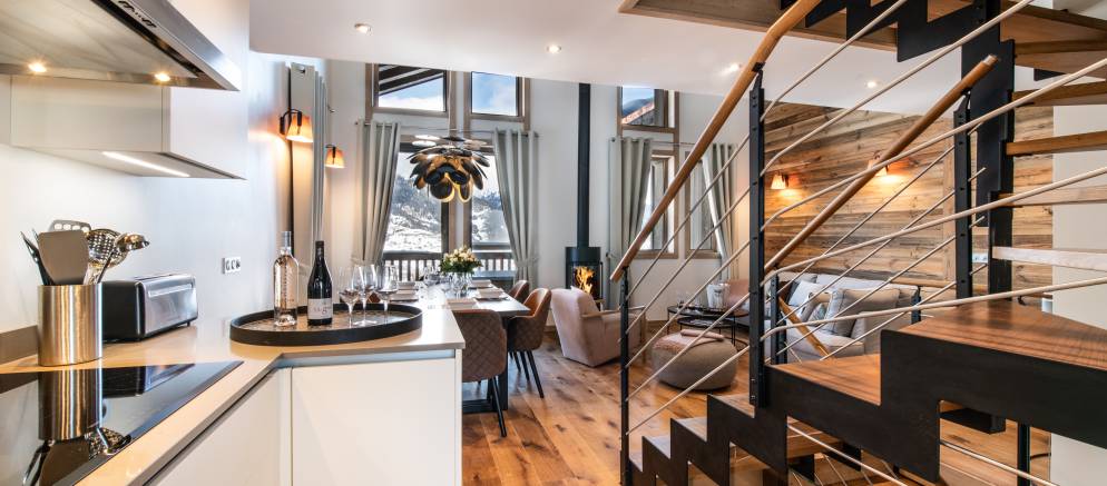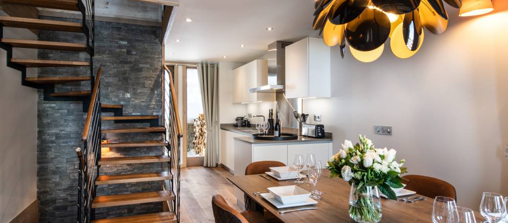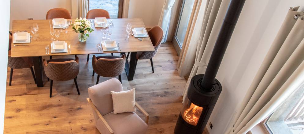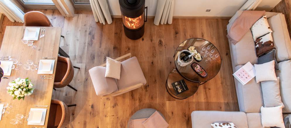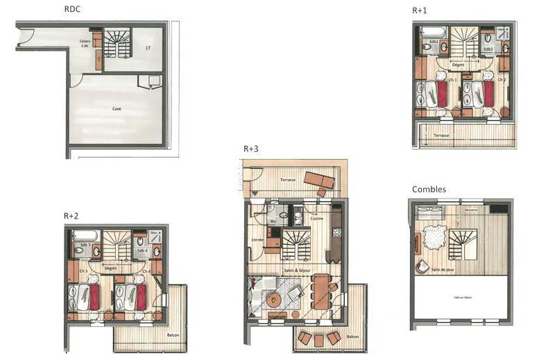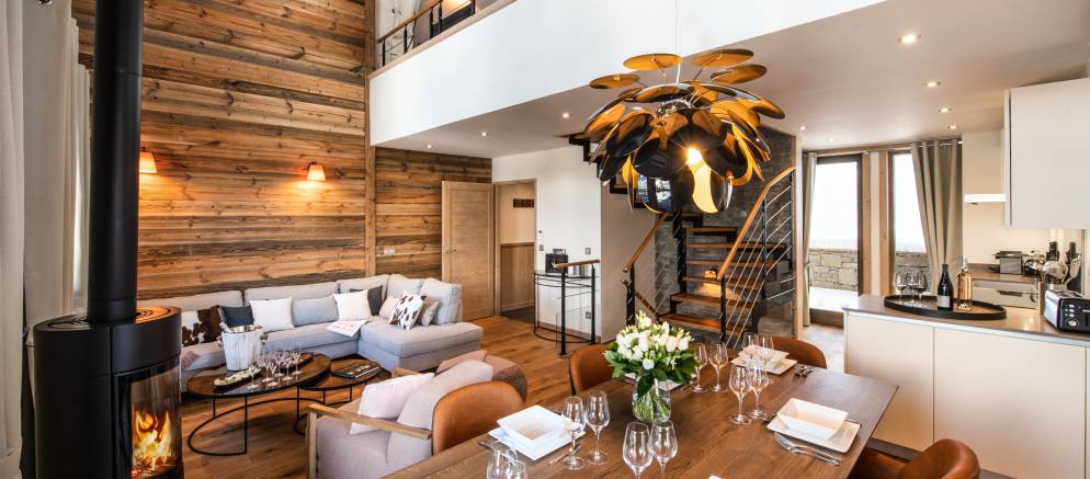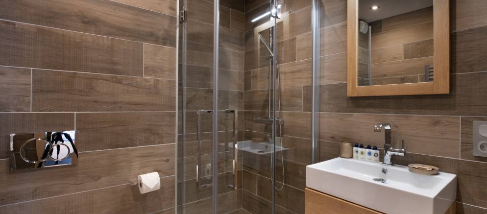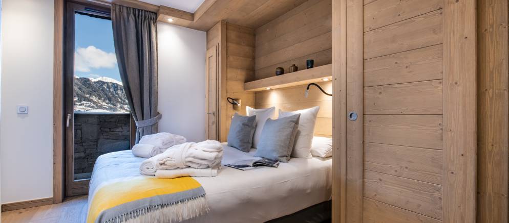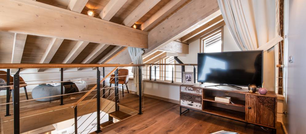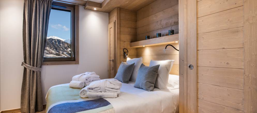 Arranged over four floors and 174m2 of living space, the chalet sleeps 8 people in four bedrooms all with either en-suite shower or bathroom. On the first floor there are two double bedrooms with terrace access. On the second floor there are a further two double bedrooms, with one of these having a private balcony.