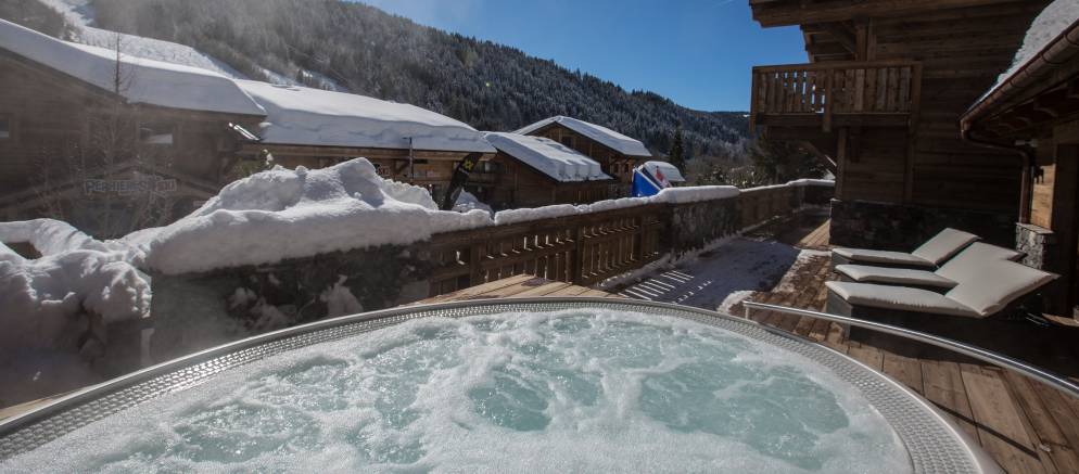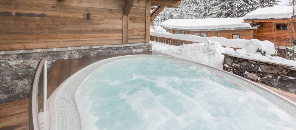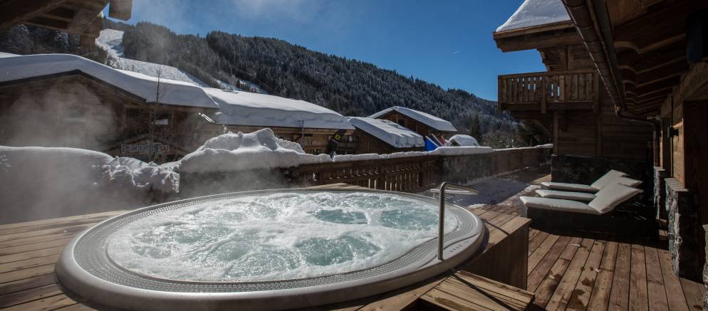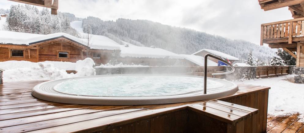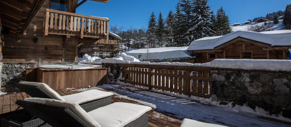 Outside, the wide terrace is perfect for spring sunbathing and the sunken hot tub a particular delight when the snow is falling.