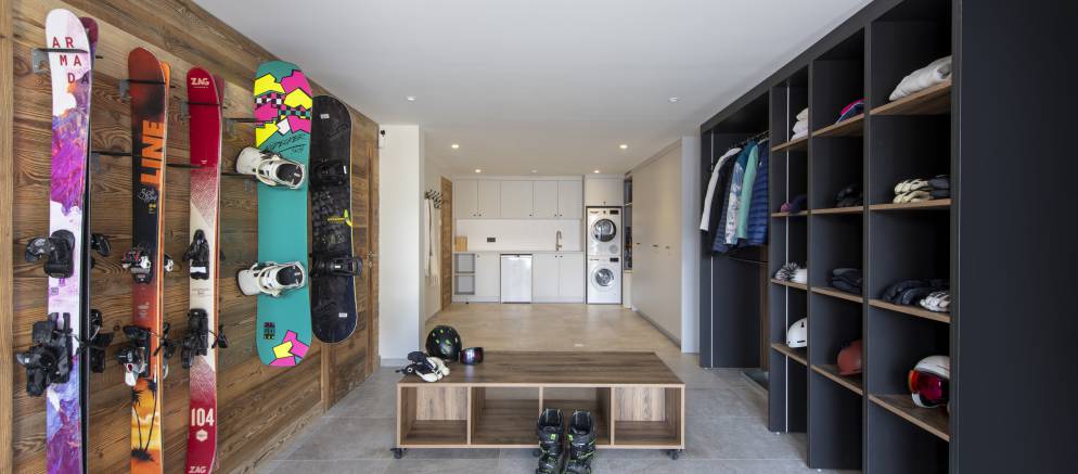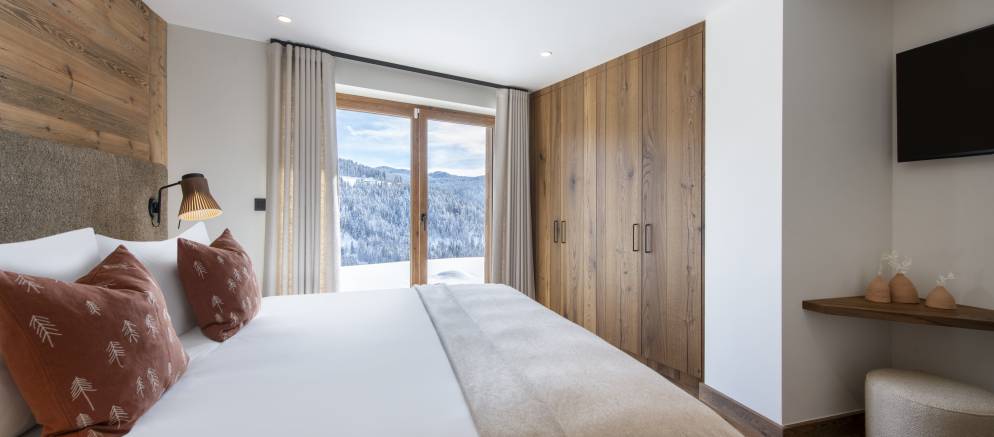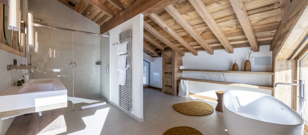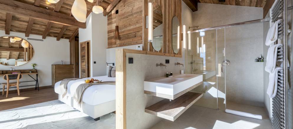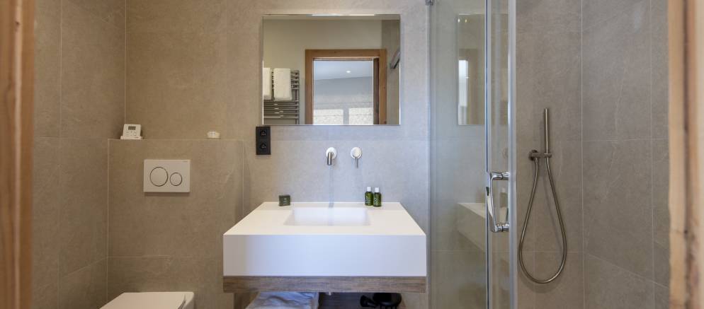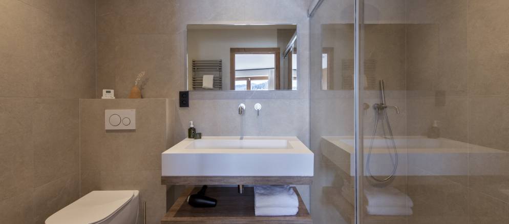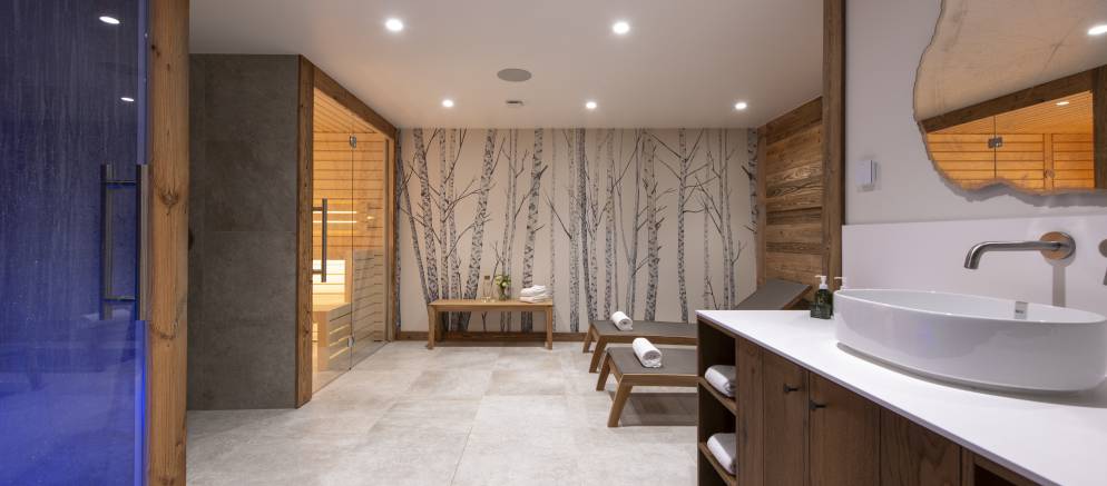 The chalet is accessed via a private drive with a choice of two entrances, either through the main front door or the conveniently positioned ski room. The ground floor is shared between entertaining, relaxation and a peaceful night’s sleep. The comfortable cinema room and the spa with sauna, hammam and treatment room, sits alongside three double en-suite bedrooms, one of which also includes a bunk bed. Outside on the terrace the hot tub with stunning views awaits your arrival