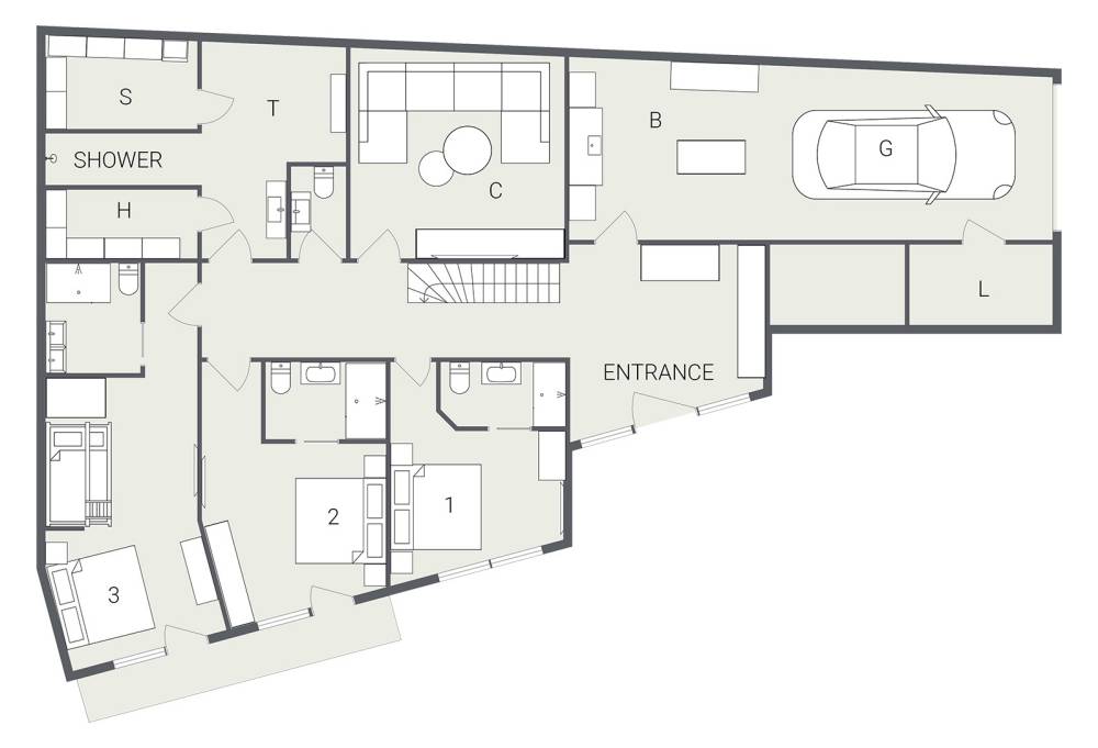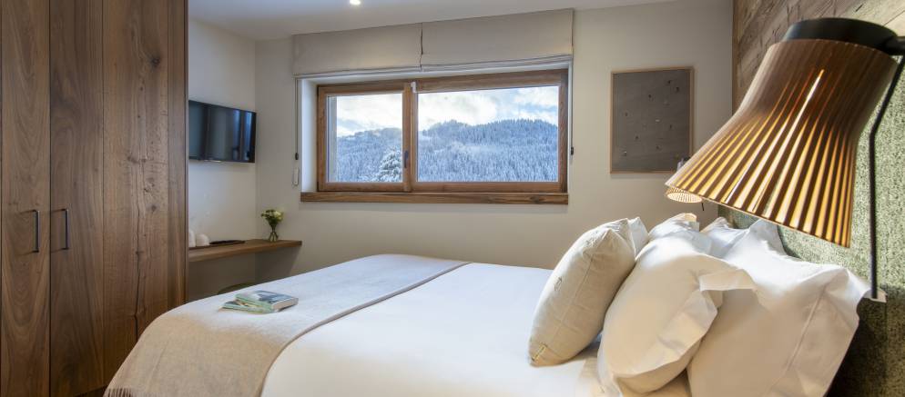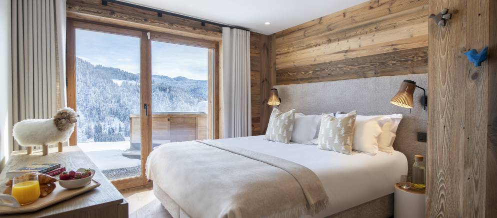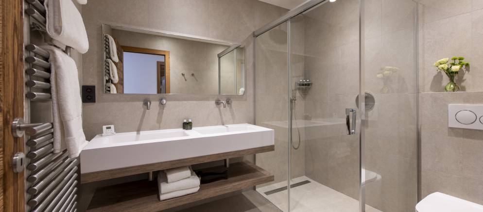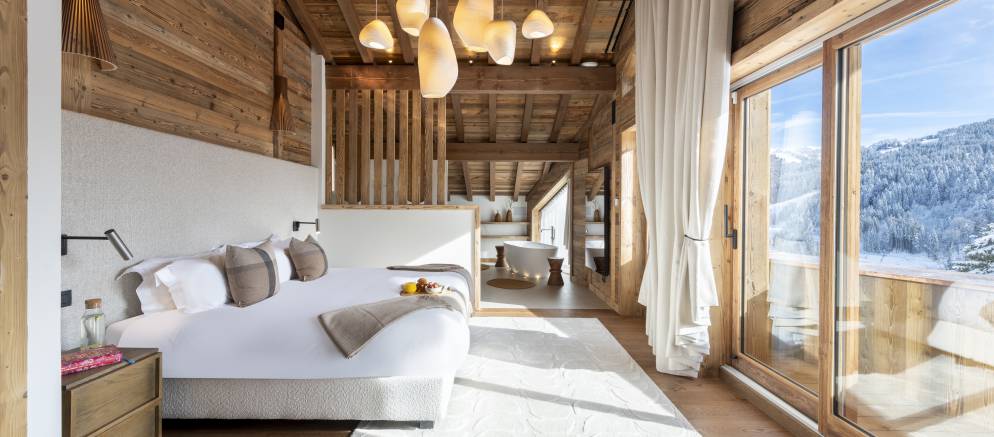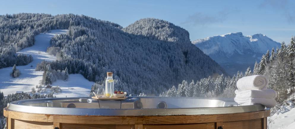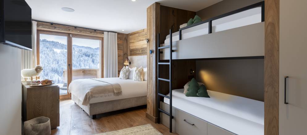 The chalet is accessed via a private drive with a choice of two entrances, either through the main front door or the conveniently positioned ski room. The ground floor is shared between entertaining, relaxation and a peaceful night’s sleep. The comfortable cinema room and the spa with sauna, hammam and treatment room, sits alongside three double en-suite bedrooms, one of which also includes a bunk bed. Outside on the terrace the hot tub with stunning views awaits your arrival