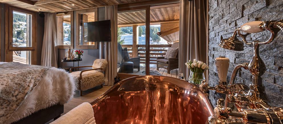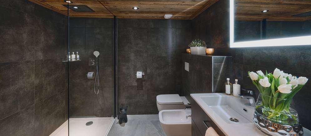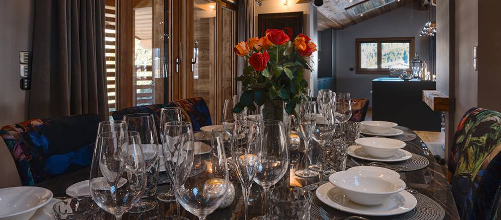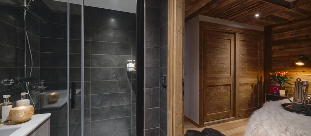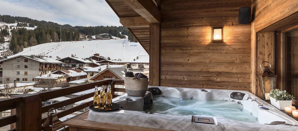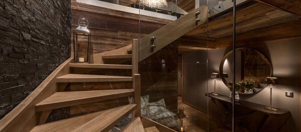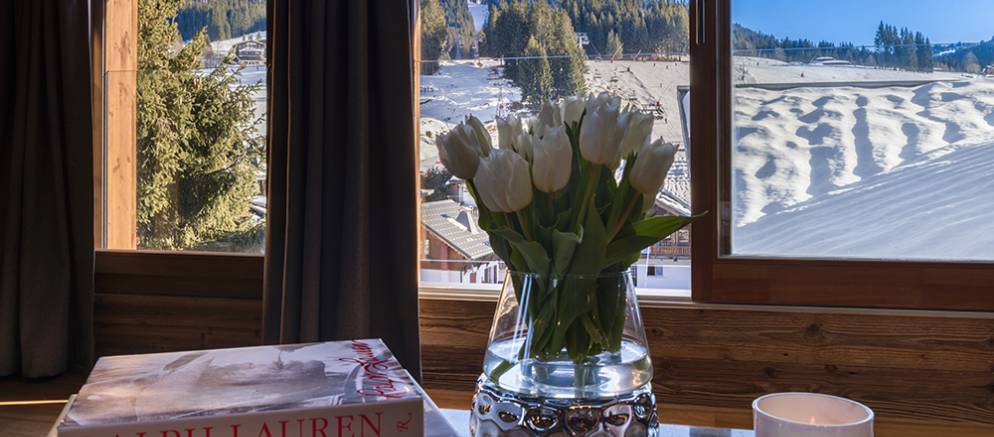 Le Coin Perdu is a five bedroom self-catered apartment in the centre of Les Gets that feels more like a chalet. This super stylish property is arranged over 2 floors and benefits from double height ceilings in the main entertaining room. Located within the newly built apartment and spa “Solaret” building in Les Gets and residents are able to enjoy the luxury amenities within it. The location in the centre of Les Gets, means that the ski slopes and lifts, shops and restaurants are all only a short walk away.
