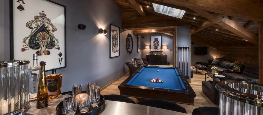 Entering the property on the lower level and you discover a large, open plan lounge and bar room with plenty of space for entertaining. The full-size pool table and prominent bar area make this the perfect party room. Surround sound speakers and a large screen television above the bar will give endless pleasure to music and sports fans alike! Furthermore, the terrace with hot tub is accessed from this room and from there you can take in the views over Les Gets.