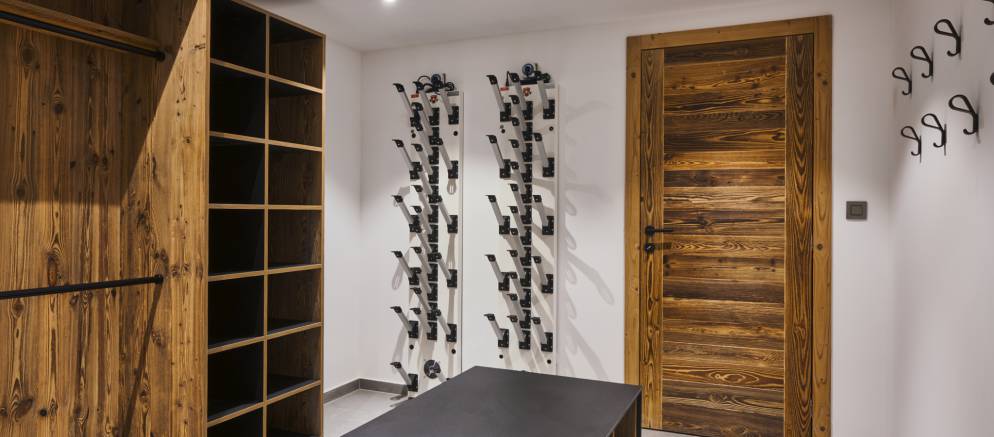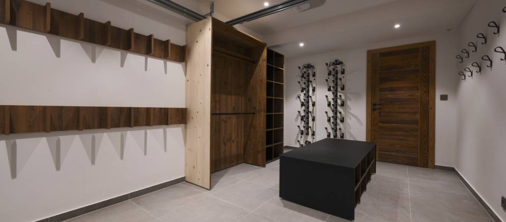 The chalet is spread over four floors and can accommodate up to 12-14 guests. The entrance to the chalet is on level two, where you will also find the spacious ski room with plenty of storage space along with heated boot and glove warmers. Taking the stairs up to the next level, you arrive into the stunning open plan living areas where you are greeted with stunning views over Mt Chéry through the floor-to-ceiling windows.