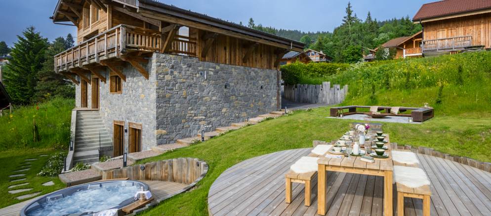 Chalet Tosca is a luxury ski chalet in Les Gets offering panoramic views over the resort and mountains. Located in a peaceful setting, and with a large garden, it makes for a wonderful alpine retreat for your ski holiday. On the Chavannes side of the village, the chalet is around a six-minute walk to the Bruyère piste, which leads onto the home run down to the Chavannes gondola and chairlift.