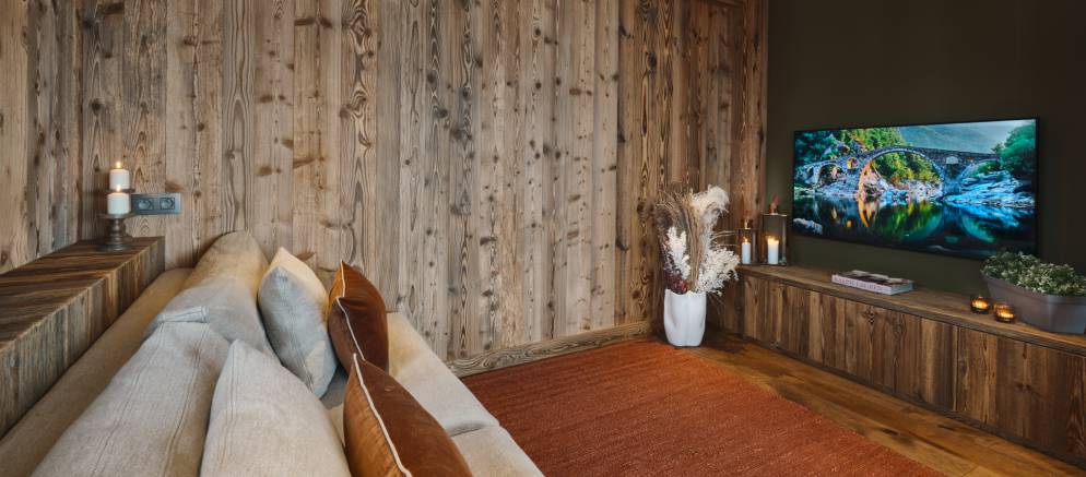 When not spending time on the ski slopes you can enjoy the spa and entertainment facilities at the chalet. There is a wellness area with sauna and shower, whilst outside there is a hot tub to sink into. Back inside and you can enjoy cosy movie nights in the dedicated cinema room. There is also space for spa treatments and in-chalet massages can be arranged at extra cost.