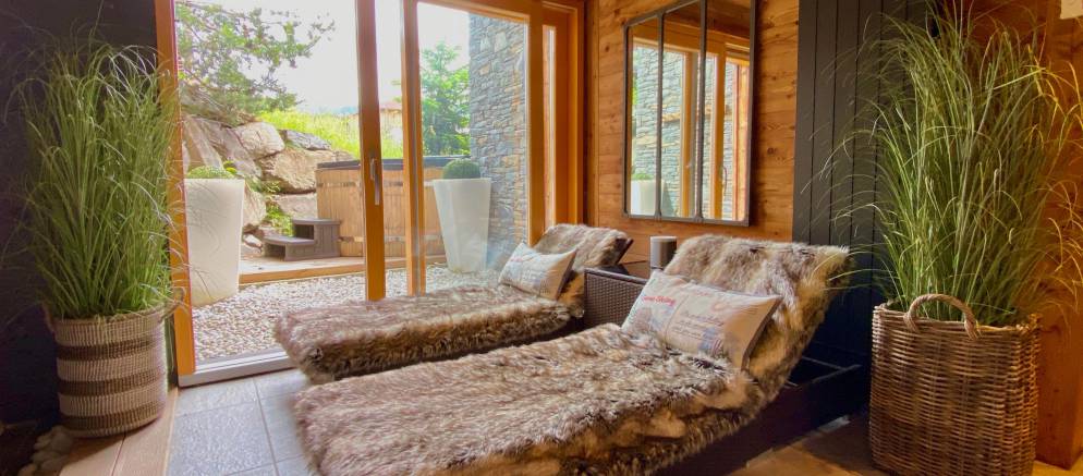 The chalet is arranged over three floors with the entrance on the ground floor. Upon entering the chalet on your left is a hand-crafted wooden ski room which has plenty of hanging space and top of the range boot and glove dryers so your kit will be warm and dry for the start of your ski day. The ground floor is completed with the private spa facilities which are a great feature of this chalet, especially for any non skiers in your group.