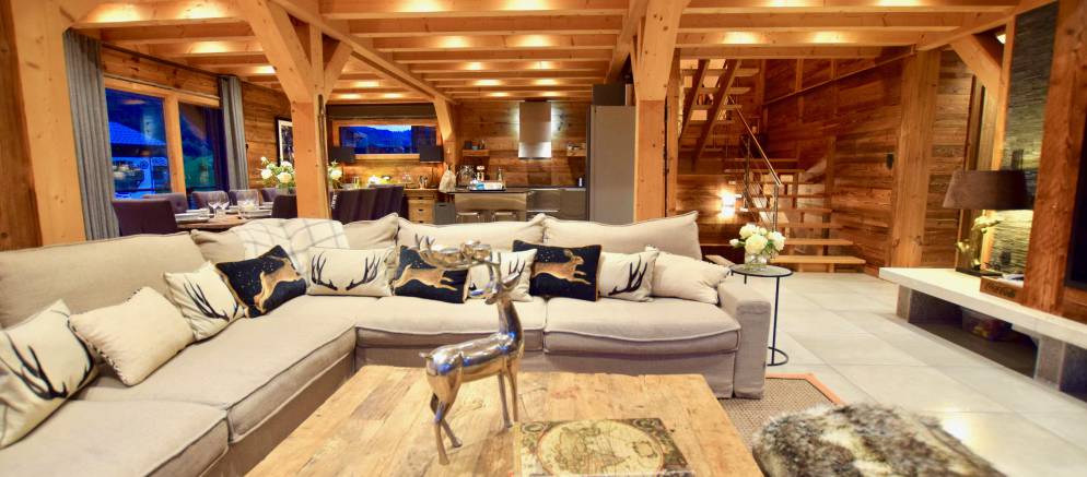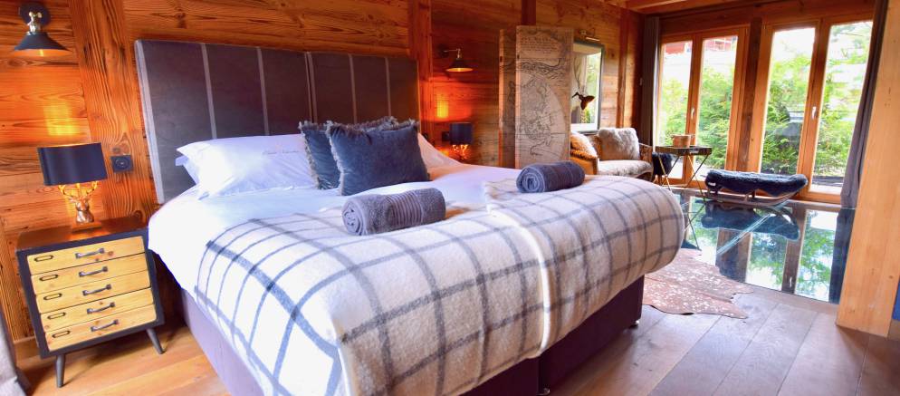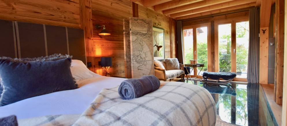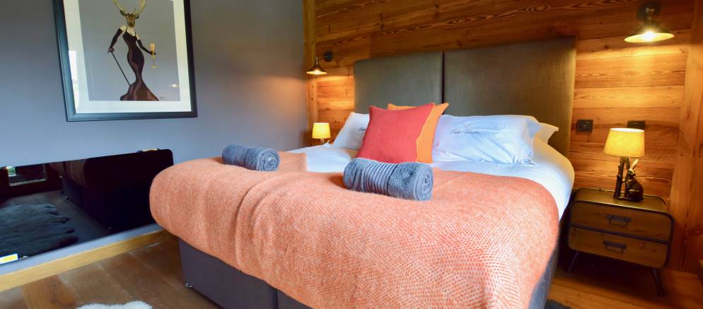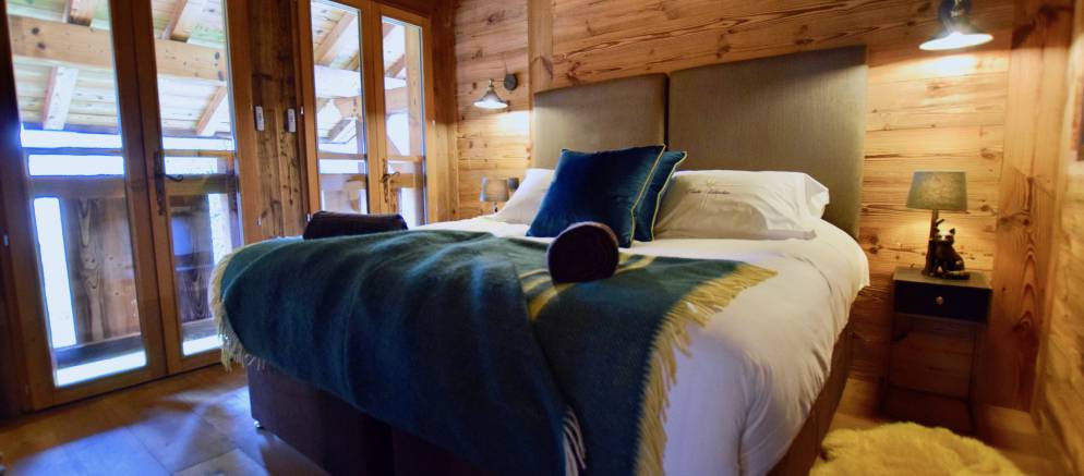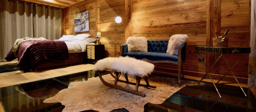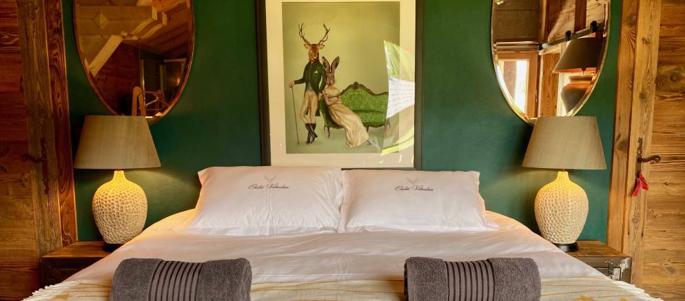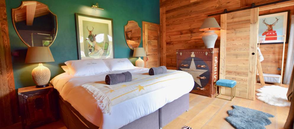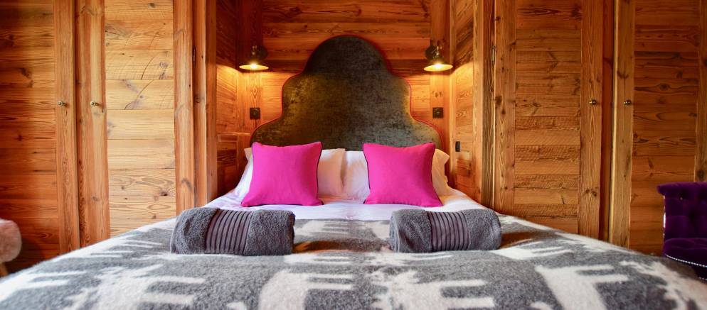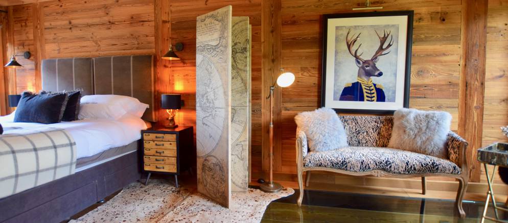 The chalet is well-equipped for entertainment with a large flatscreen TV, WiFi, Sonos system and selection of board games to enjoy. Just off the main living area is the first bedroom with the final four bedrooms located on the second floor. All are furnished with their own unique look, using sumptuous wool and velvet throws, sheepskin rugs along with Christian Lacroix and Ralph Lauren bedroom chairs.
