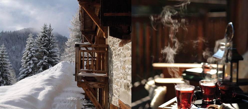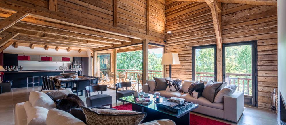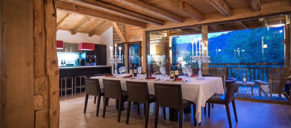 At Ferme de Moudon the bedrooms nestle beneath the ancient timbers, stunning mountain vistas are revealed from windows tucked under the eaves and the cashmere throws and soft leather furnishings tempt you to snuggle down. The sumptuous sofas in the drawing room surround the roaring log fire and the dining table is adjacent to the open kitchen. After dinner, sink into the plush leather sofas in the TV snug with a digestif, or play a leisurely game on the billiards table.