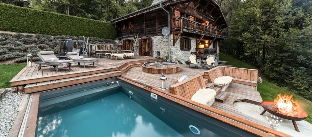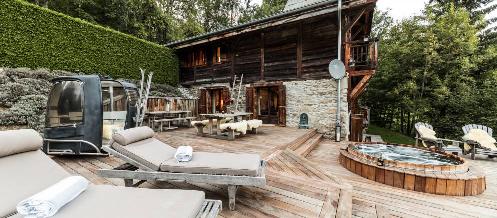 This chalet is a true retreat from reality; its location is incredibly private and secluded, yet you are only moments from the chic Alpine resort of Les Gets. Standing on the balcony, you hear nothing but the tumbling stream or the morning birdsong; you see nothing but the mountains, the snow-clad pines and the skies. The chalet’s 4 floors and 6 bedrooms accommodate 10-12 guests in pure luxury.