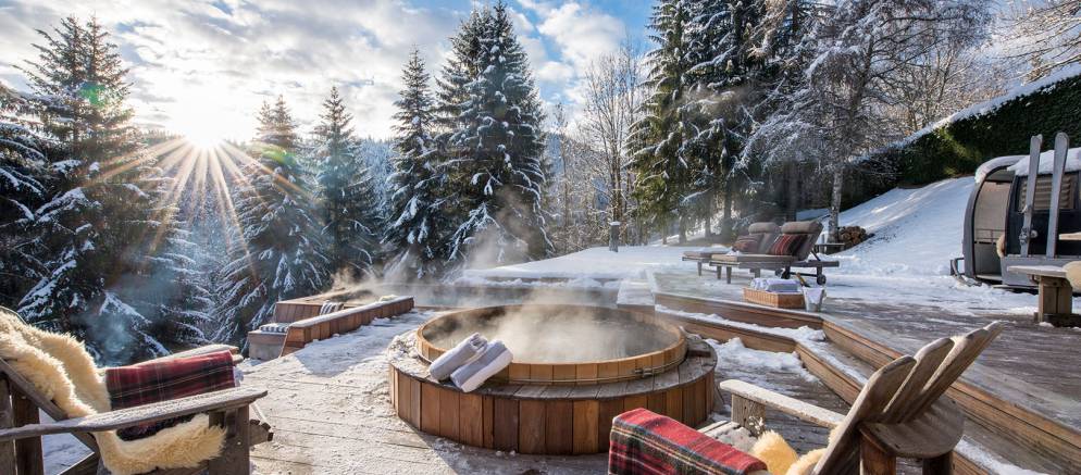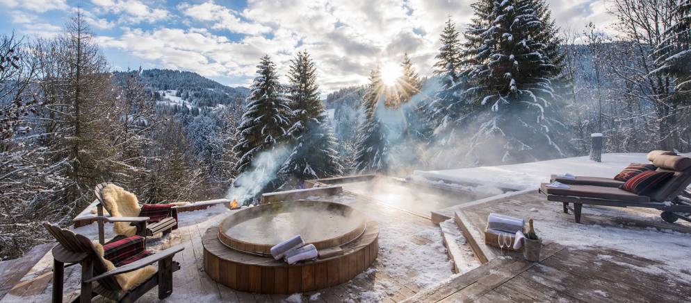 The spa facilities invite you to embrace your incredible natural surroundings. Reinvigorate in the sauna, before stepping onto the private terrace and refreshing under the ice-cold shower, under the watchful gaze of the magnificent pine forest. Slide into the outdoor swimming pool or sunken hot tub and soak away the cares of the day whilst the mountains perform their daily ritual with a breathtaking sunset. Meanwhile, inside, your spa therapist awaits to soothe and re-energise those aching muscles.