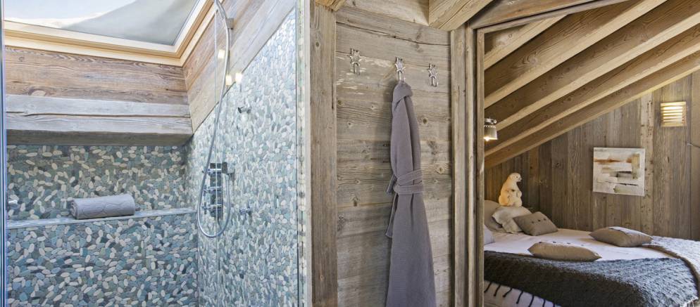 The open plan living spaces are found on the 2nd floor with an open kitchen, dining room and lounge with large feature fireplace. The main south-facing terrace gives a spectacular view of the Meribel valley, the summit of La Saulire and Mont Vallon at 3000 metres in height. The fireplace is at the heart of the chalet and the lounge is set out around it making it perfect for evenings together.