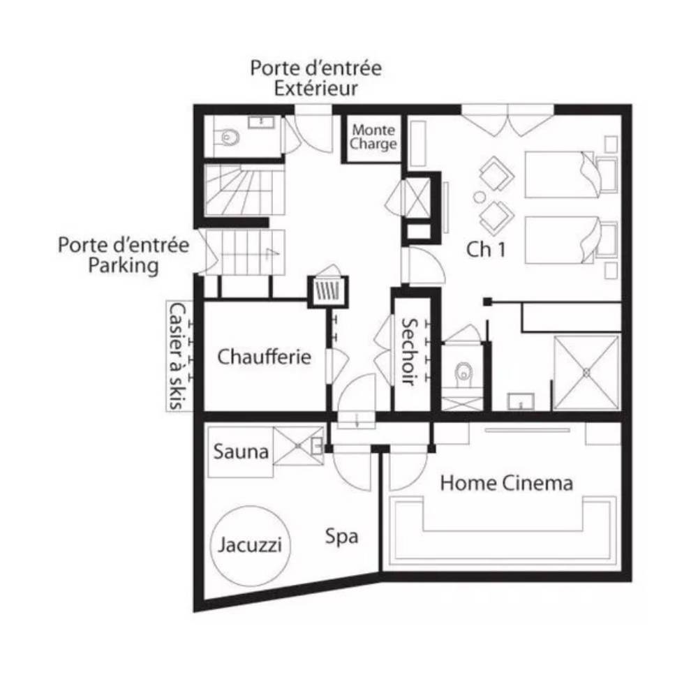 The ground floor of the chalet is decked out with great facilities with a spacious cinema room, spa area with indoor hot tub and sauna plus a ski room with boot warmers. This floor is completed with a double / twin bedroom with en-suite shower room. If required the cinema room can be arranged with a sofa bed for the 11th and 12th guests.
