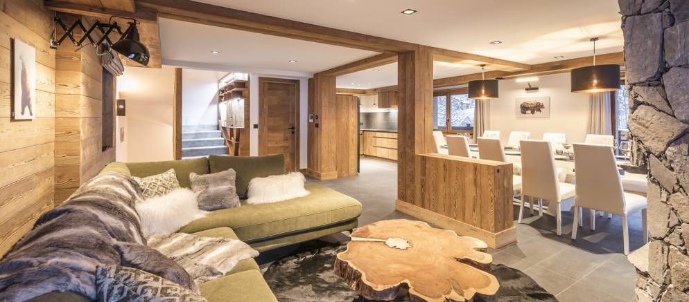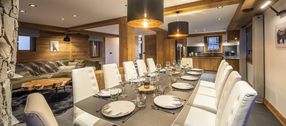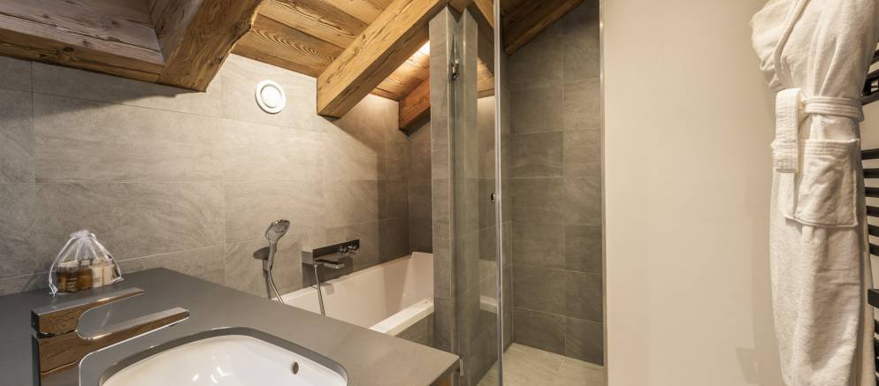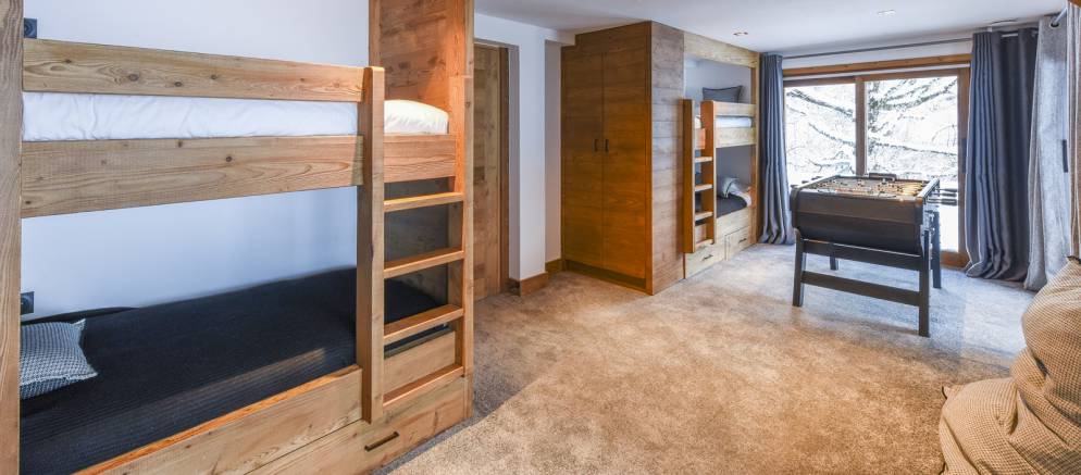 Sleeping 8 adults and 4 children there are 5 en-suite bedrooms. The top floor of the chalet is dedicated to the spacious master suite with king-size bed and dressing room. To the second floor there are three double rooms, two of which can be arranged with twin beds.