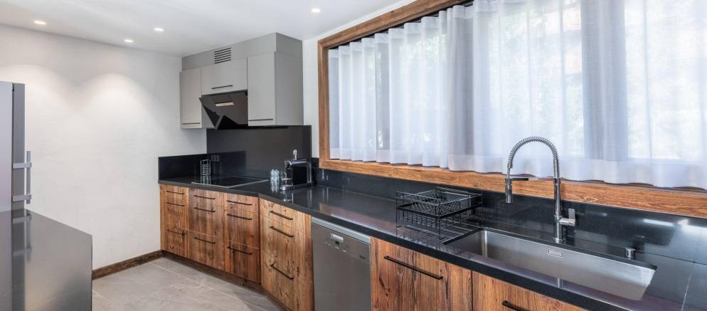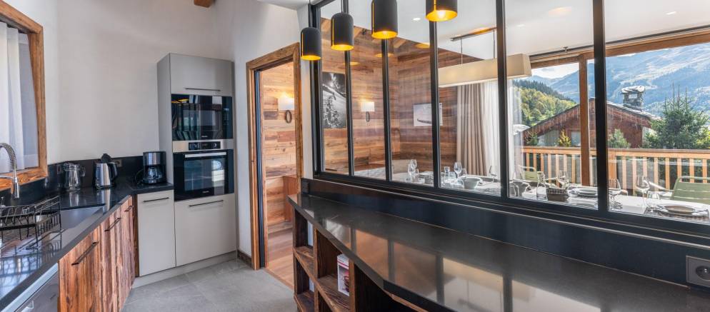 The chalet is built over four floors and 220m2 of living space. The bright and spacious open plan living room, dining room and kitchen are arranged over the first floor. Here you can step out onto the wide balcony and enjoy the view over the resort, mountains and the home ski slope. The kitchen is fully equipped for a successful self-catered holiday, and there is a small supermarket and excellent bakery within walking distance.
