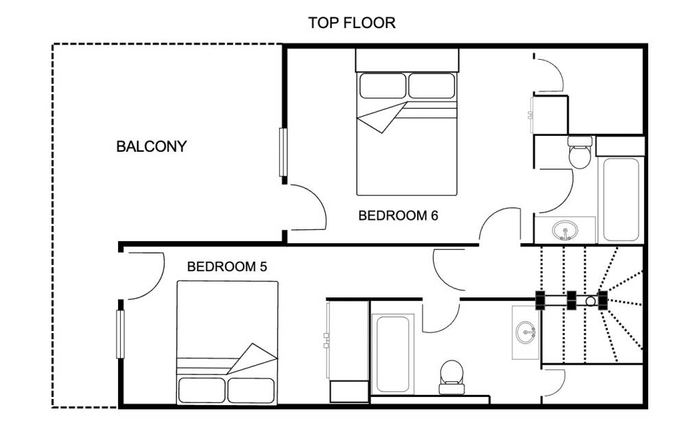 The six bedrooms are spread throughout the chalet, with three on the first floor, one on the second floor, and two on the top floor. Five of the bedrooms have en-suite facilities whilst one bedroom has a separate private shower room. All the bedrooms can be set up with either double or twin beds, affording maximum flexibility for groups of friends or several families looking to holiday together.