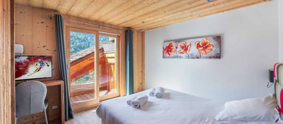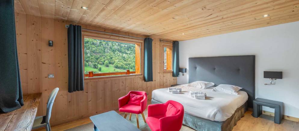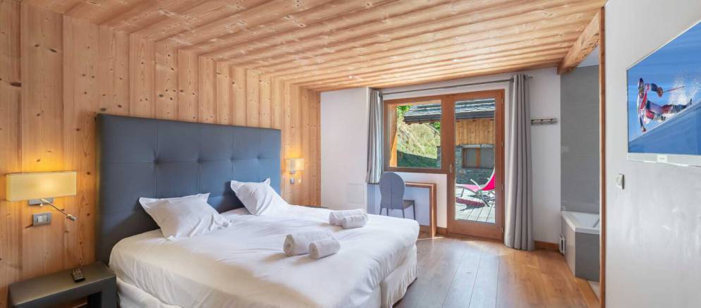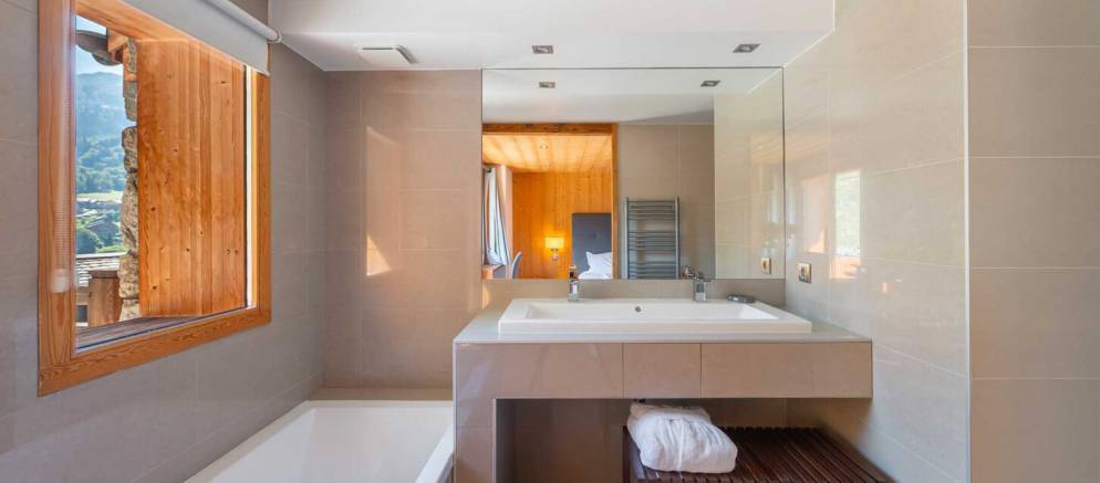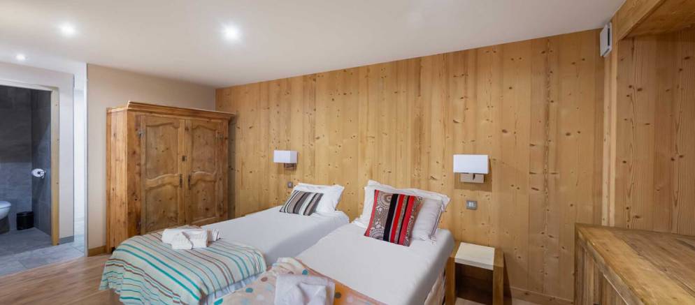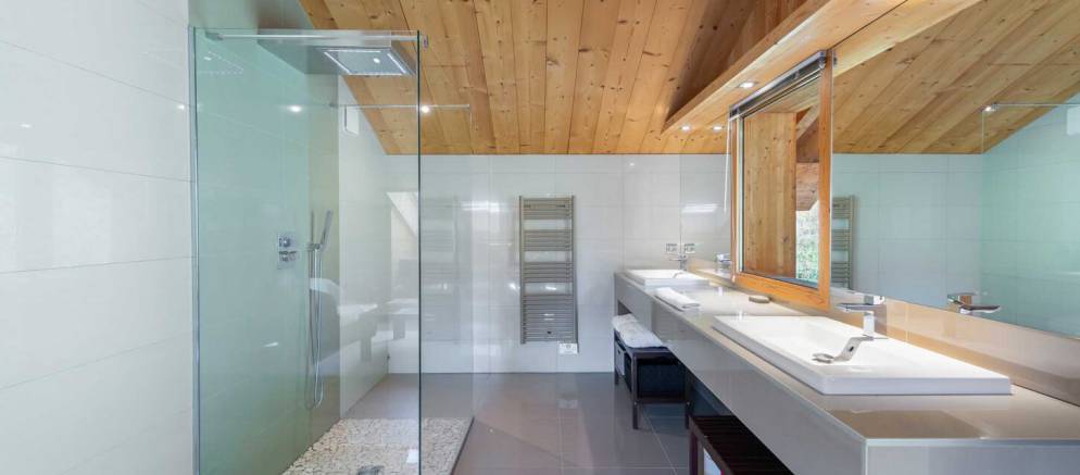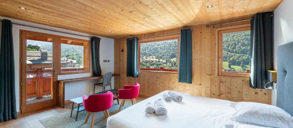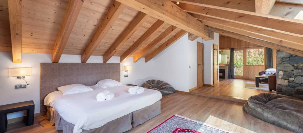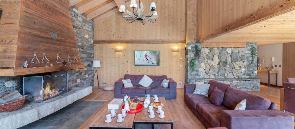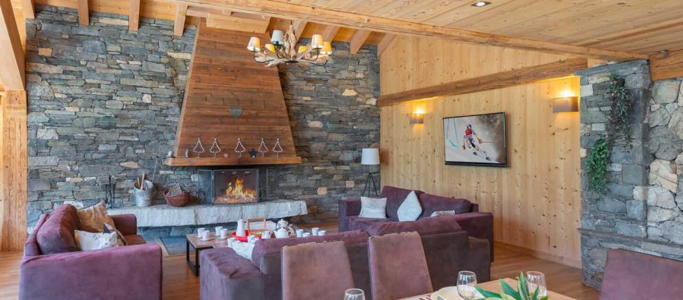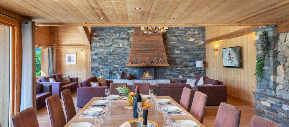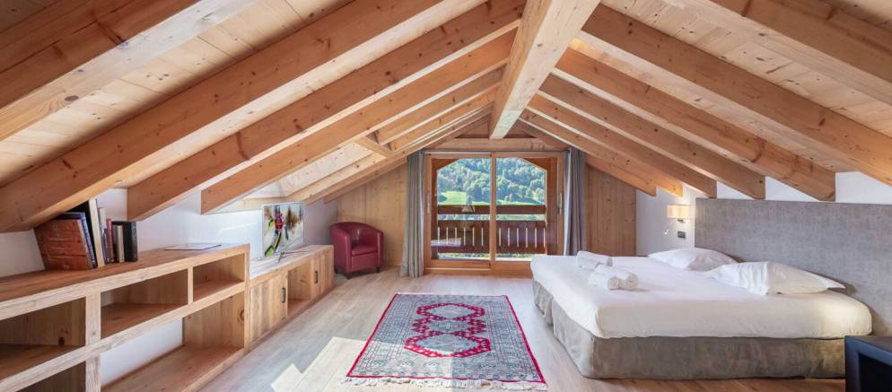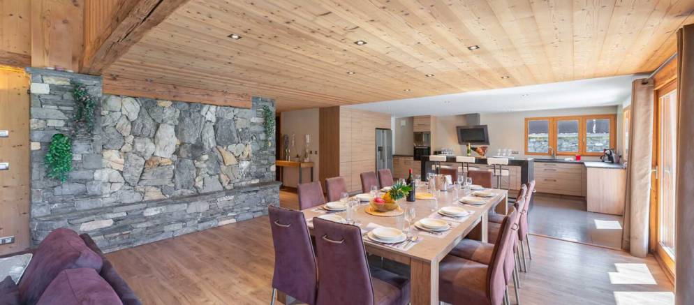 The chalet is arranged over four floors and 400m2 of floor area. Outside the chalet is built with the traditional materials of the valley with stone and timber cladding. Inside there is also plenty of alpine finishes, but this is mixed with white painted walls and more contemporary furnishings. This is a chalet that embraces the mountain environment and large picture windows flood the property with natural light.