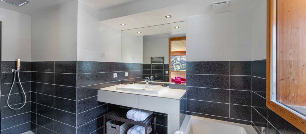Outside on the terrace on the second floor is the hot tub which is an inviting sight after a day’s skiing. There is a ski room with boot warmers to store all your mountain equipment, as well as a washing machine and tumble dryer if you need to do any laundry whilst away. For those driving to resort, there is also parking available in the garage.