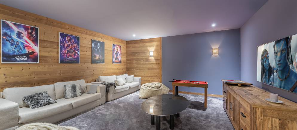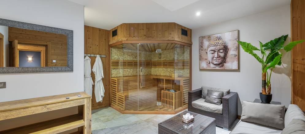 The chalet is well equipped with spa and entertainment facilities. On the first floor is a large cinema room, along with a spa area with glass fronted sauna, seating area, and dedicated massage room. Outside on the terrace on the second floor there is also a hot tub which you can sink into and let the bubbles ease your tired muscles after a day’s skiing.