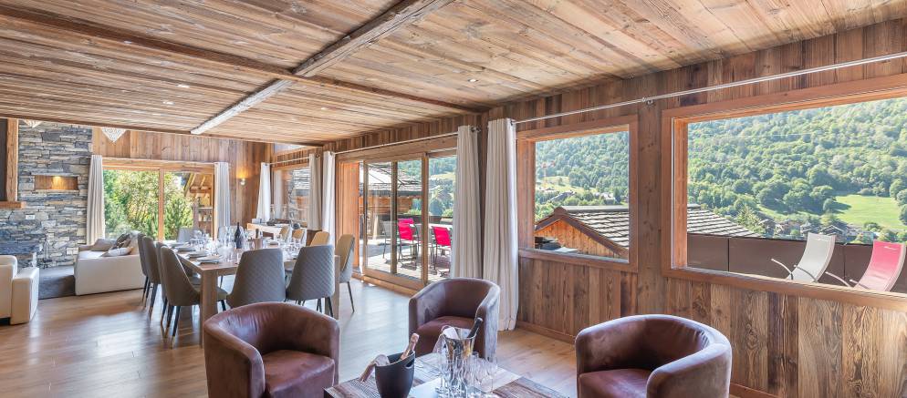 Chalet Kashmir is a spacious self-catered chalet located in the charming hamlet of Meribel La Gittaz. The chalet perfectly combines a mountain setting surrounded by nature yet only a short drive to the ski lifts and slopes of Meribel. Panoramic views can be enjoyed from the balconies, and the large sun terrace is orientated south-west and perfect for watching the sun set behind the mountains.