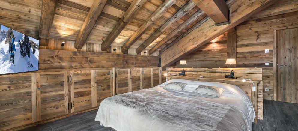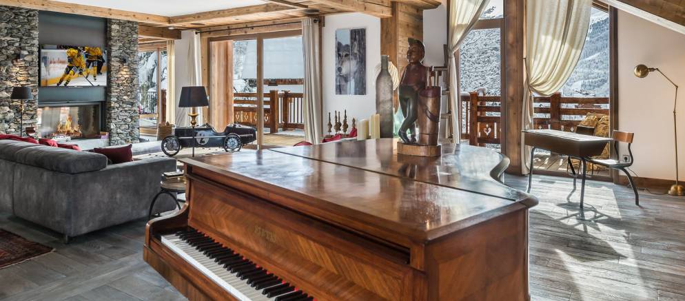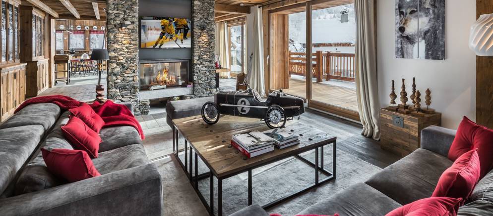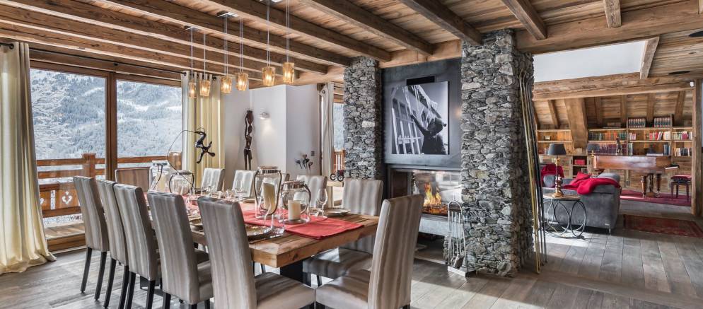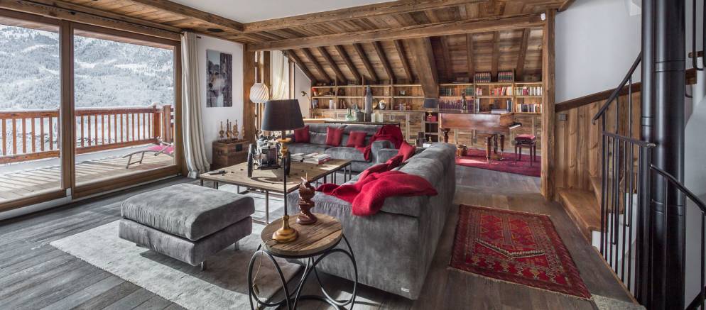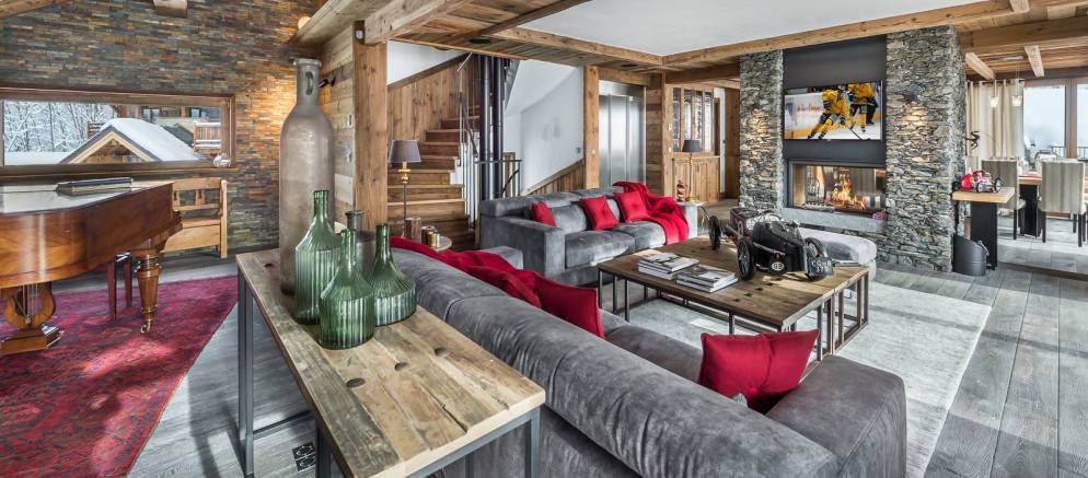 This is a very spacious chalet with 660m2 of living space spread over 5 floors. The interior is the perfect blend of the traditional style of the area blended with modern furniture and technology to create a very contemporary chalet property. Queen Mijane is a light and airy chalet and this sense of space is aided by large picture windows that bring in natural light that matches the raw materials used throughout the chalet. The grey and beige tones add to the modern design and calm ambiance.