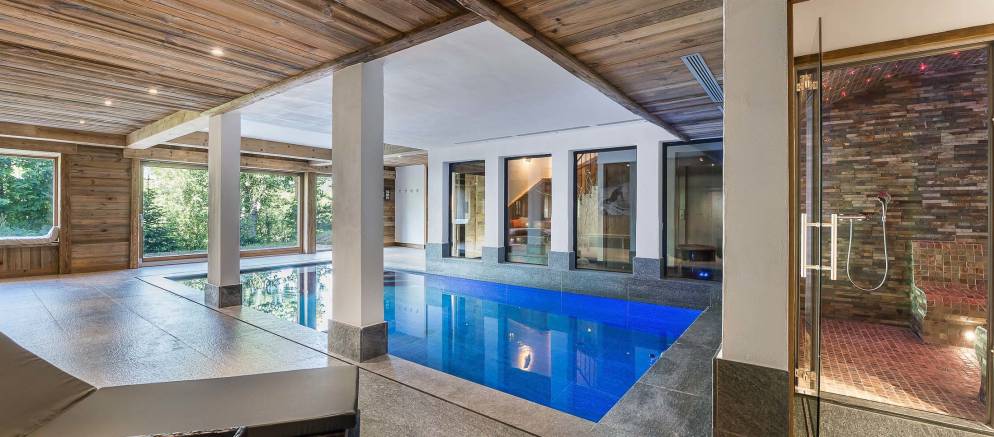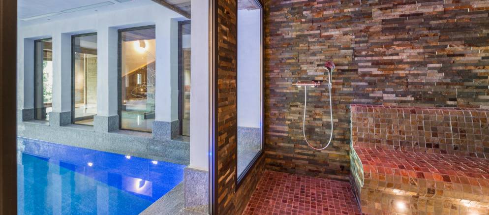 A staircase and an elevator serve all floors of the chalet, meaning that access from your bedroom to the living spaces or down to the chalets dedicated spa floor is easy. On your return from skiing, the wellness area is the perfect spot for relaxation and rejuvenation. Take a swim in the indoor infinity swimming pool, read a book on a poolside lounger, or ease tired bodies in the beautiful hammam.