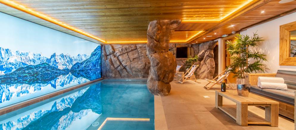 In 2019 the chalet was extended to provide larger bedrooms as well as an indoor swimming pool, steam room, snow shower and dedicated cinema room. All the bedrooms are modern and all equipped with flat screen TV and cable television. The bathrooms are exquisite and all finished with beautiful stone tiles and feature hand basins.