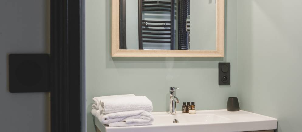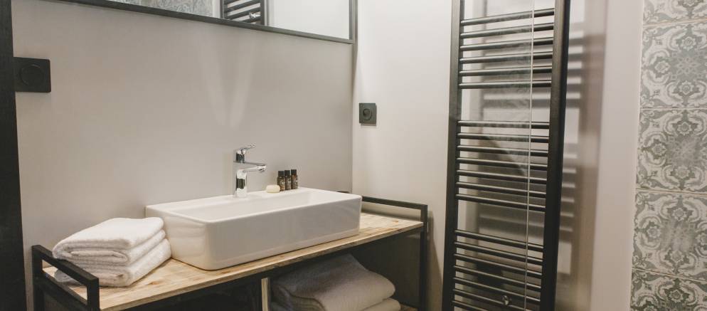 Super king-size double or twin bed with small balcony and en-suite shower room.