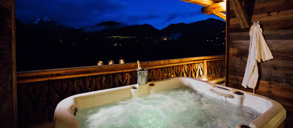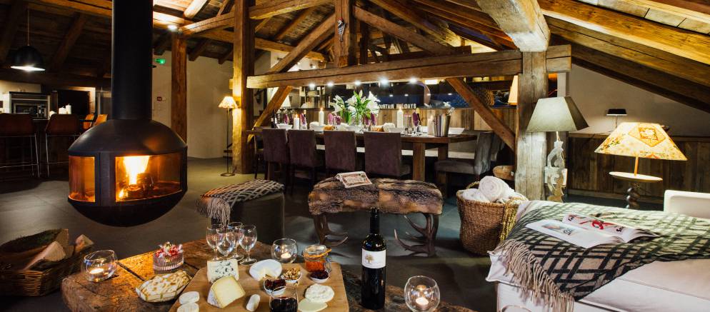 Then move to the 200 year old dining table for a 3 course dinner and then just a few more steps to the snug to relax with cheese, coffee and digestifs. And then perhaps a bit of star gazing from the impressive balcony before bed. For some private après ski relaxation, slide into the outdoor hot tub and enjoy the wonderful views over the valley.